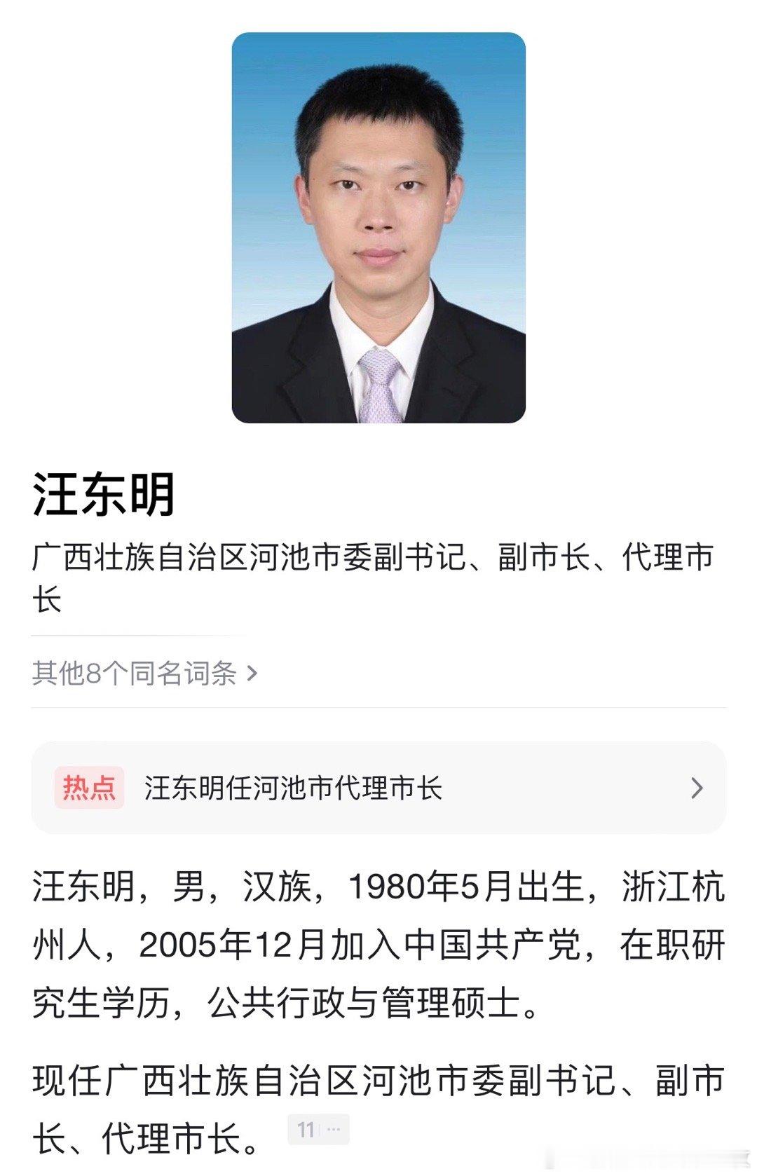 黄学军任崇左市代理市长;汪东明任河池市代理市长。