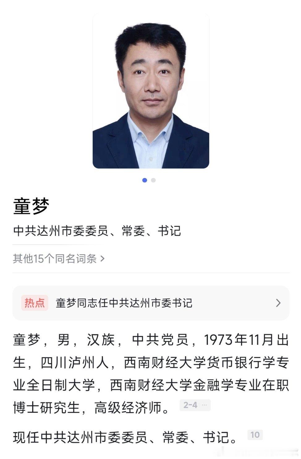 童梦任达州市委书记。