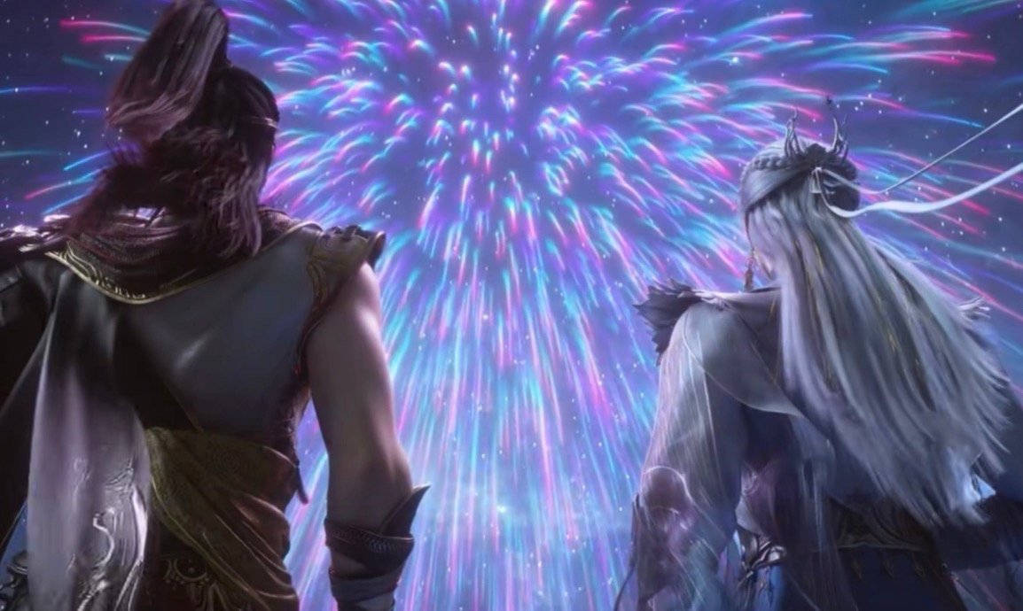 国漫烟花又有名场面了 烟火升空的瞬间氛围感拉满,江离与有莘不破双向奔赴的画面,每