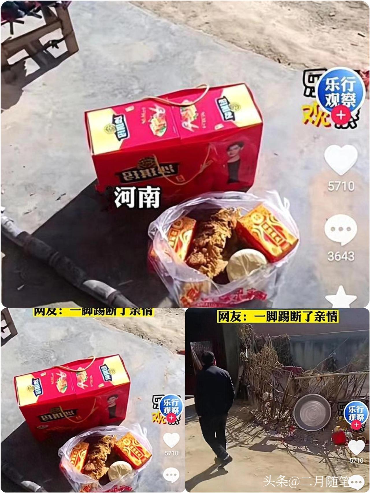 女子看望父母, 礼品被哥哥踹飞, 哥哥:拿这点东西,咋好意思来? 最近, 河南一个村口上演了一幕“踢礼闹剧”。 女儿提着自家蒸的馍, 点心还有牛奶回娘家。 哥哥一看到礼品, 脸色瞬间就变了, 飞起一脚把礼物踢得七零八落, 还骂她“拿这些破东西也好意思回来现眼”。 爸妈二老赶忙冲出来护住女儿, 对着儿子大吼他没有良心—— 原来女儿是因为公公病重, 才提前回家看望父母的。 并不是故意把回门礼不当一回事。 这件事在当地引发热议。 也触动了很多人的心弦。 如今这回门礼啊, 感觉早就变了味儿了。 以前送点表达心意的东西就行, 现在却跟考试评分似的,礼品不够贵重, 直接就被说成“不懂事”。 女儿家里日子并不好过, 丈夫又是打工又是种地,不但要养活三个孩子, 还要照顾生病的老人; 可娘家哥没有成家, 基本上就没啥负担, 却心里不痛快, 觉得妹妹嫁出去了就不是一家人了, 而自己留在家里也没混出个人样儿来。 有网友说: 一碗热乎乎的汤面, 比那价值十万的礼盒都让人暖心。 可现实里, 儿子送五百块, 就被夸有出息。 女儿包上五千块, 却被嫌弃是在打发叫花子。 礼数原本就是用来衡量亲情的, 可现在却变成了称钱的秤。 后来妈妈小声嘟囔着, 那些馍是女儿熬夜蒸的,怕凉还裹了三层棉布; 爸爸则蹲在地上, 把被踢翻的饼干一块块捡起来, 拍干净土, 再默默的装进口袋…… 心意, 永远比价钱重要; 亲情, 不能用礼物来衡量! 您认同吗?