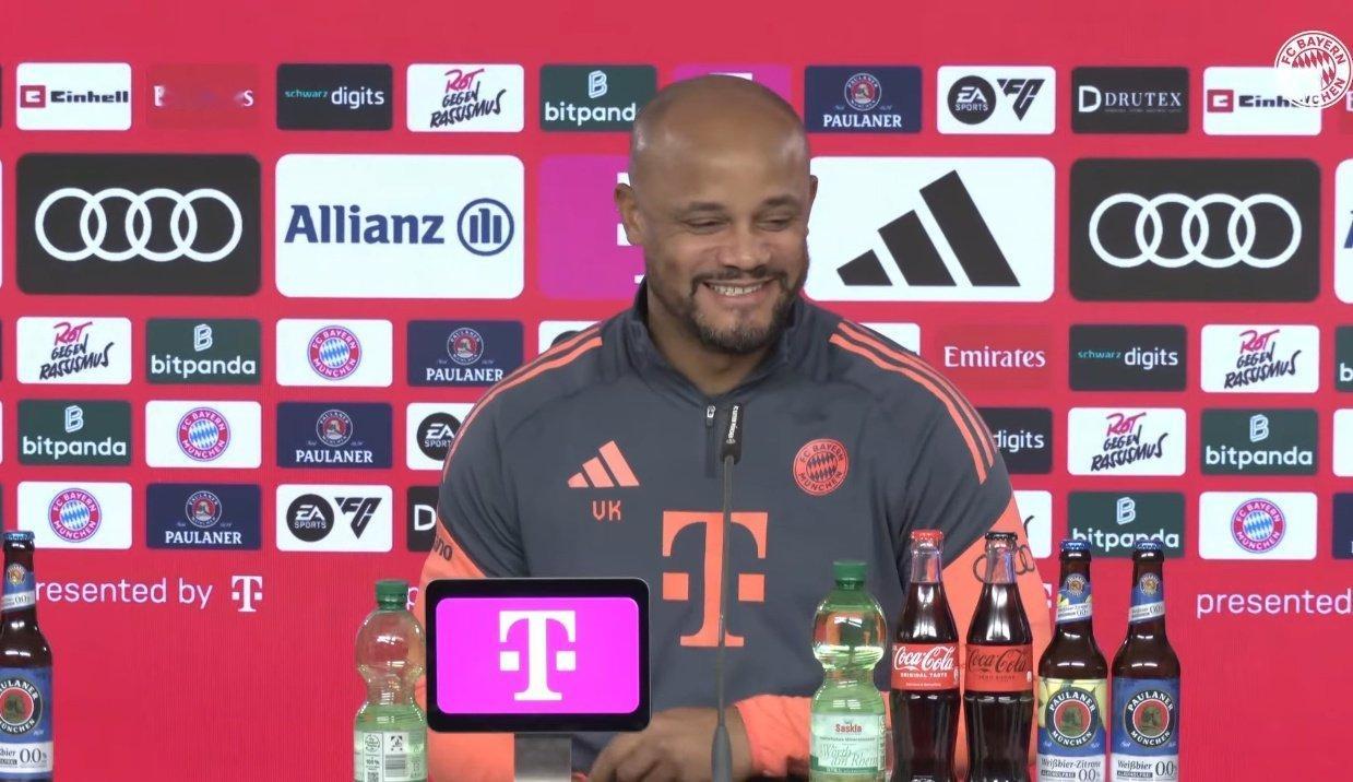 孔帕尼被问及是否知道奥利塞在对阵莱比锡的热身赛中差点用球砸到他:“我没看到。他没撞到墙上真是太好了(笑)。”