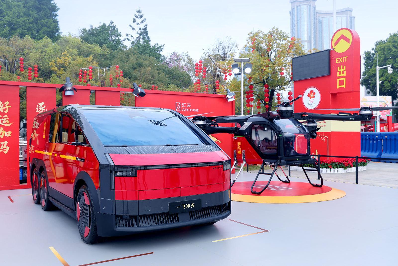 好家伙!广州花市还卖飞行汽车? 太科技、太先进了!广州花市还是太会了 汇天陆地航母飞行汽车新春涂装首发亮相天河花市,真羡慕现场的广州朋友可以近距离欣赏咱“陆地航母”