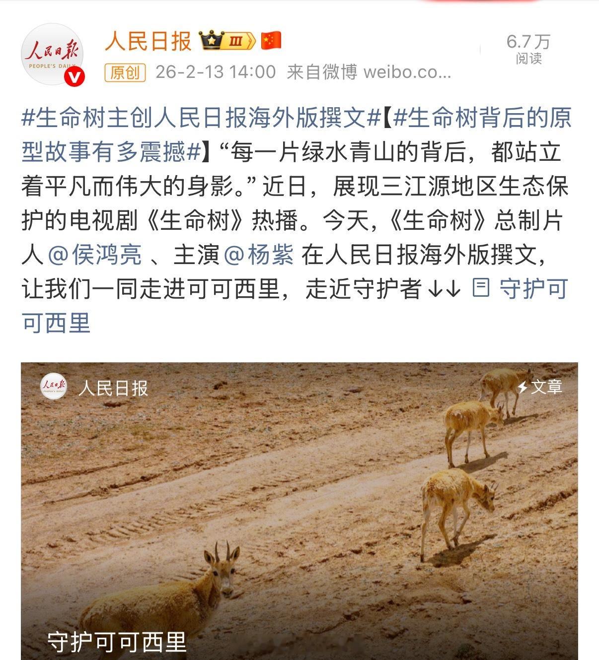 人民日报发了杨紫主演的《生命树》,非常有意义的一部剧