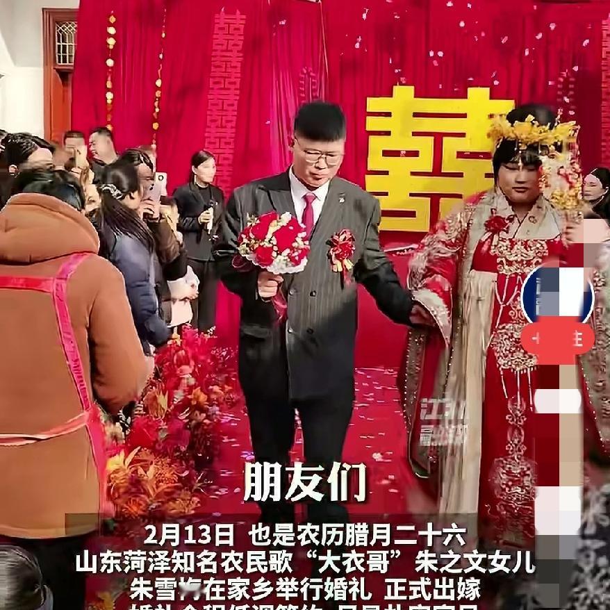 全网都在看! 大衣哥朱之文女儿朱雪梅大婚, 这场婚礼直接打醒了很多人。 朱雪梅身穿凤冠霞帔端庄大气,新郎是邻村踏实稳重的小伙,不拼家境不拼背景,大衣哥早就说过:选女婿只看人品。 明明有条件办豪华婚礼,一家人却选择低调从简,守着农村最朴素的仪式,不炫富、不张扬,这份清醒太难得了。 比起豪门联姻,踏实靠谱、真心相待,才是普通人最稳的幸福。大衣哥用行动告诉大家,名气再大,日子还是要过得实在。 你觉得大衣哥的择婿观,是不是最靠谱的?朱村村大衣哥 朱雪梅 程雪梅 贺雪梅 山东临沂高雪梅 朱雪梅恋情