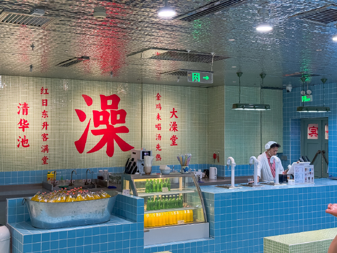 外地游客对于洗浴中心也心向往之。萱萱(化名)曾在哈尔滨旅行时特地去体验了当地的洗浴文化,“大澡堂刚开始会有些尴尬,但搓完之后一下觉得自己轻了两三斤。”回北京后,萱萱又多次前往汤泉泡澡,“洗浴中心会给人一种放松的环境,特别是大型洗浴中心有很多体验项目,自助餐、书、电影、游戏,能在繁杂的生活中得到一些平静。”