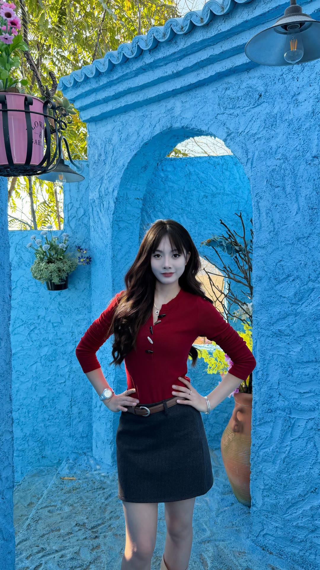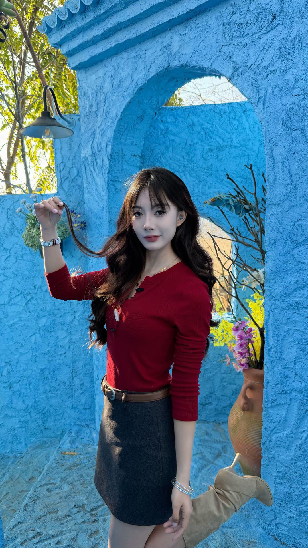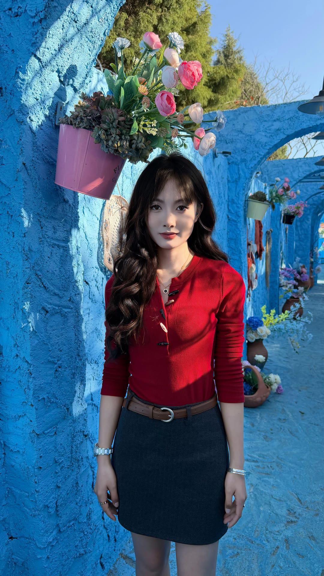 元气少女在古街市集,手捧花束,笑靥如花。分享街拍风采街拍美少女穿搭