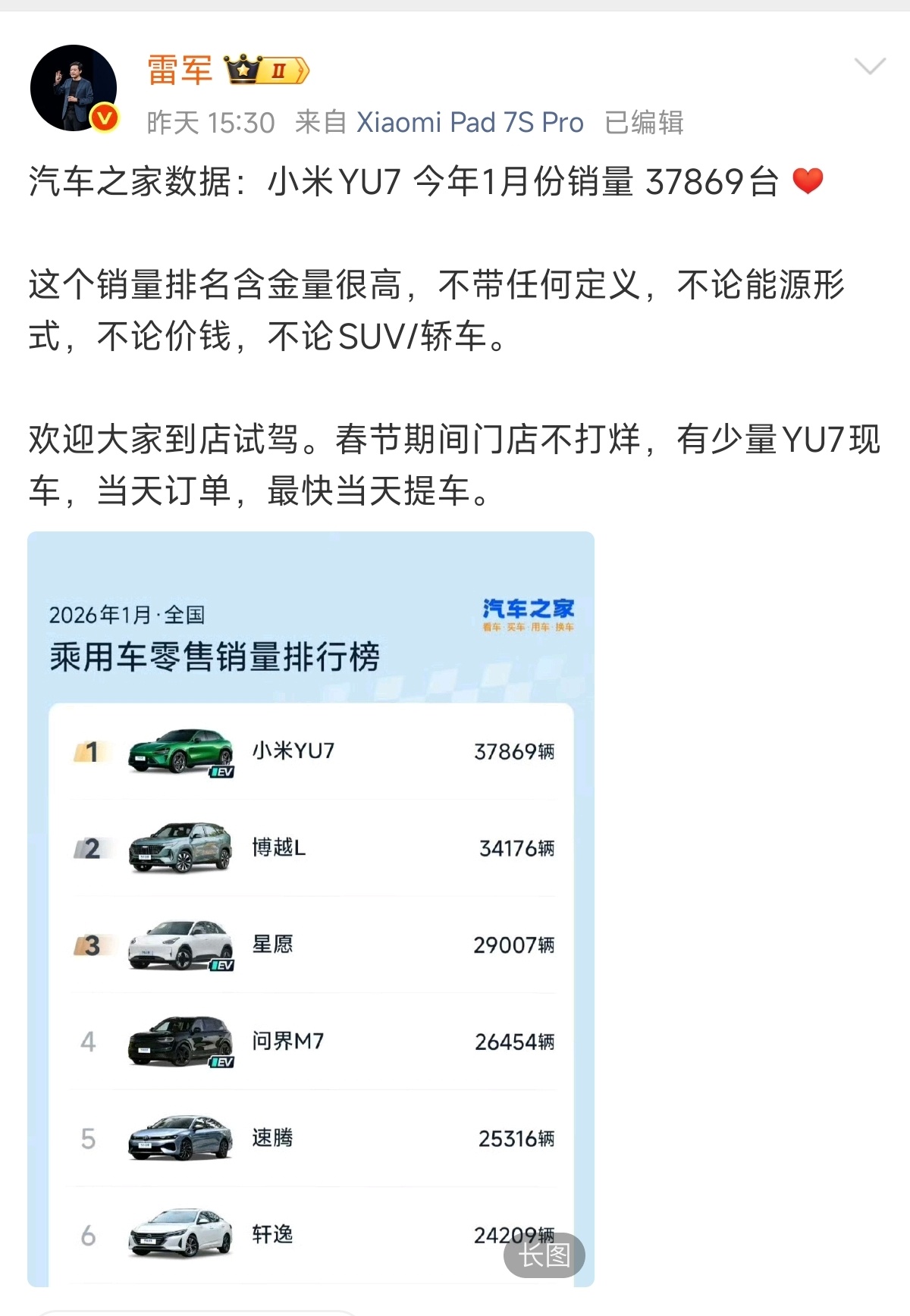 这还没过半个月,小米汽车26年1月销量数据就开始疯狂打脸了,