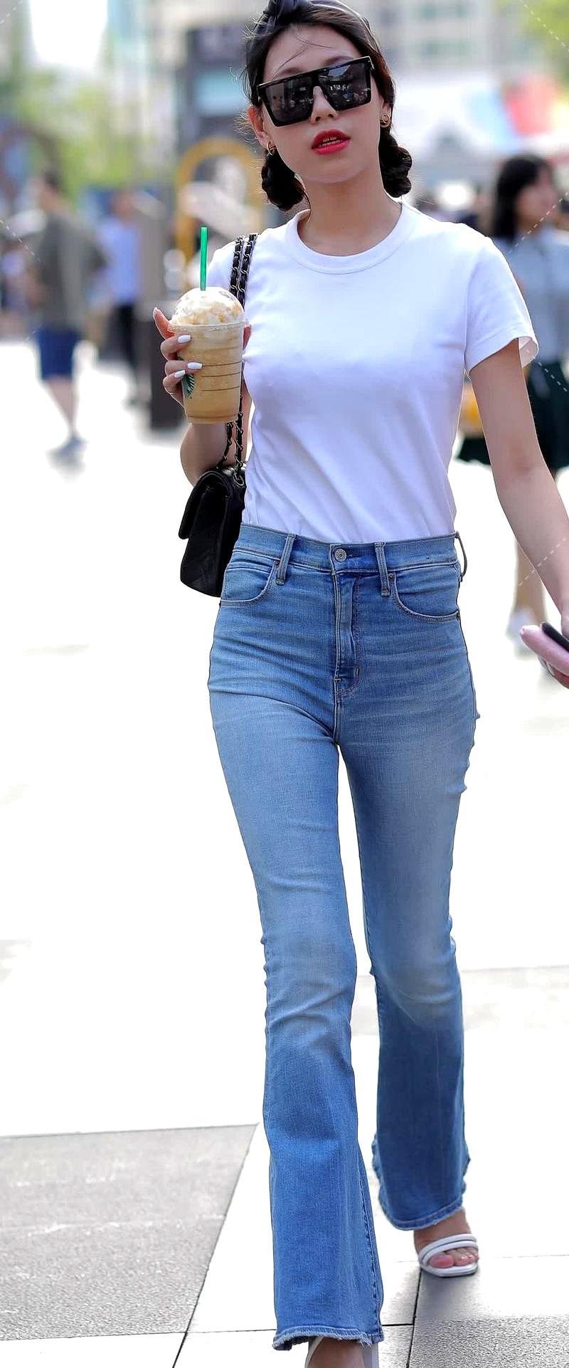 一件简约的白T恤搭配微喇裤,究竟怎样才能穿出令人惊艳的高级感呢? “白T配微喇裤看似寻常,实则大有门道:领口卡在锁骨下方,裤腿可遮盖小腿瑕疵,鞋子选择麂皮奶油白色,再用黑色菱格包镇场。这套穿搭的精妙之处在于——每个单品都相互配合,看似漫不经心却处处用心,让你轻松展现出‘随意穿搭却很好看’的高级感。” 真不是我夸大其词,白T配微喇裤这个穿搭公式,堪称时尚圈的万能法则。