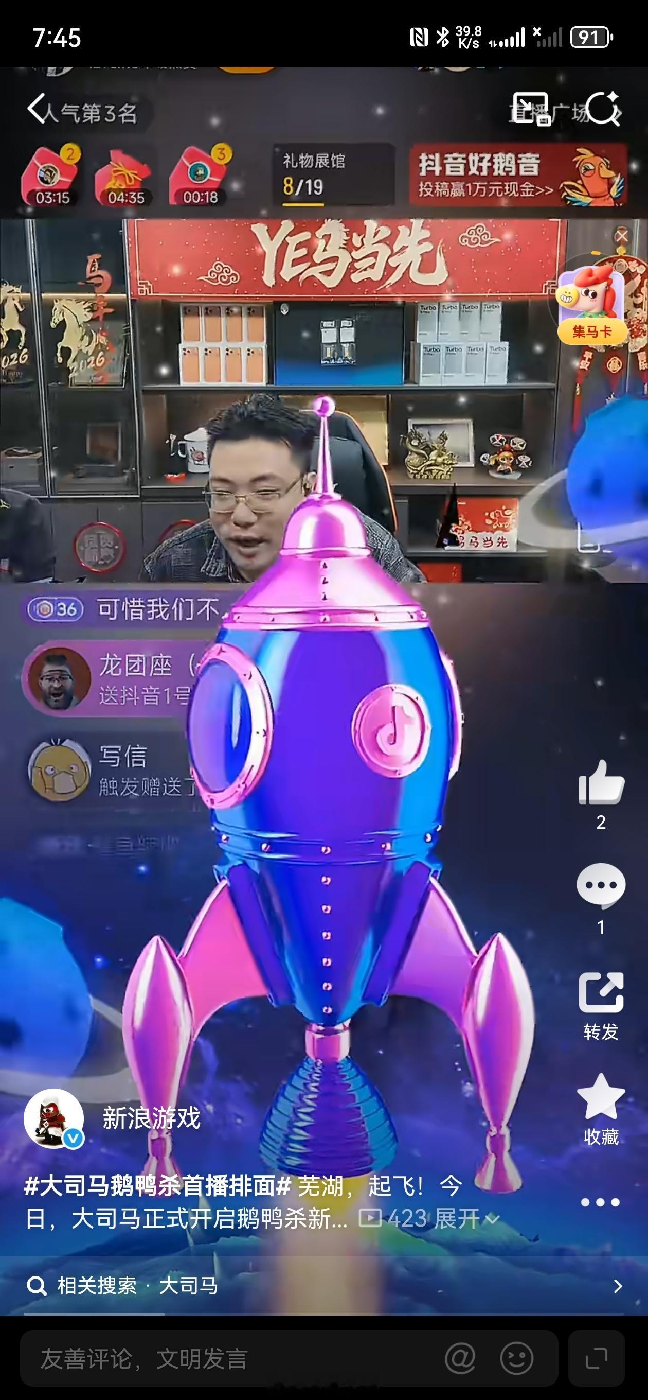 大司马鹅鸭杀首播排面大司马直播间秒变嘉年华现场,实时热度登顶平台人气榜与百强榜榜首。观众疯狂刷屏“芜湖起飞”,礼物与表情包二创拉满互动峰值,直播间气氛火爆。春节档强势破圈,尽显顶流主播号召力,堪称电竞圈的“电子年货”,热度与口碑双丰收。