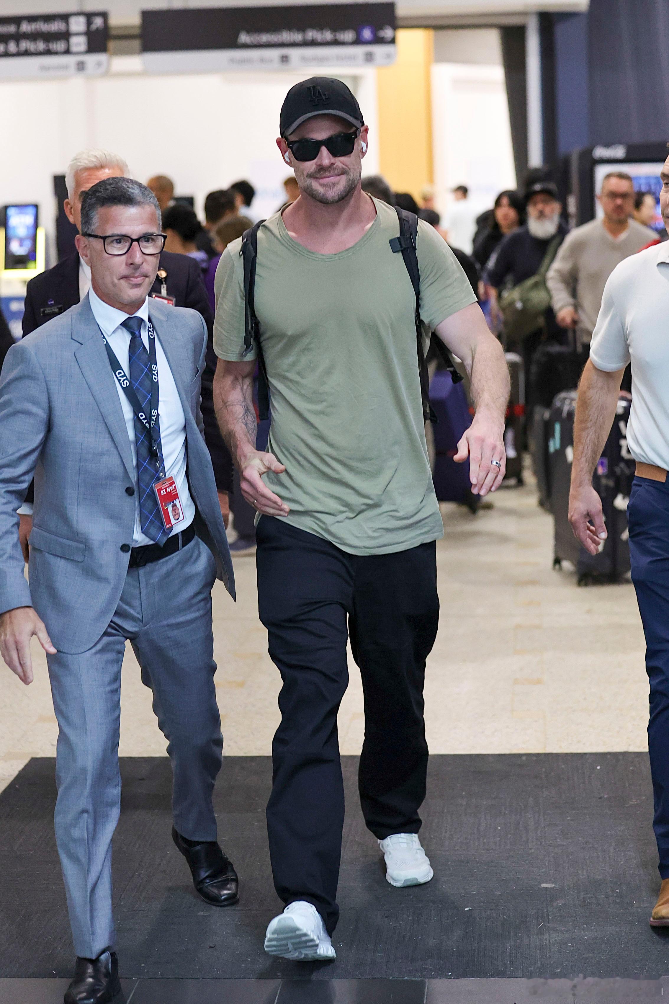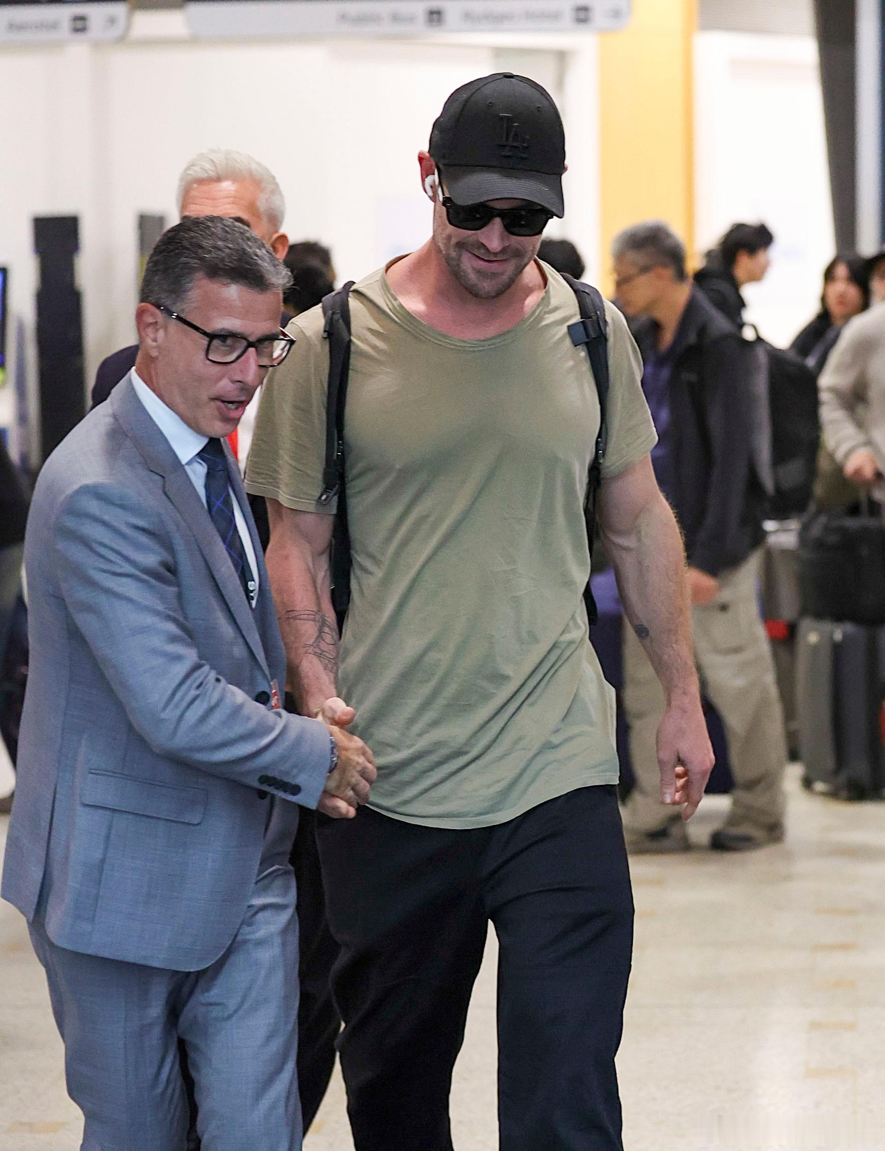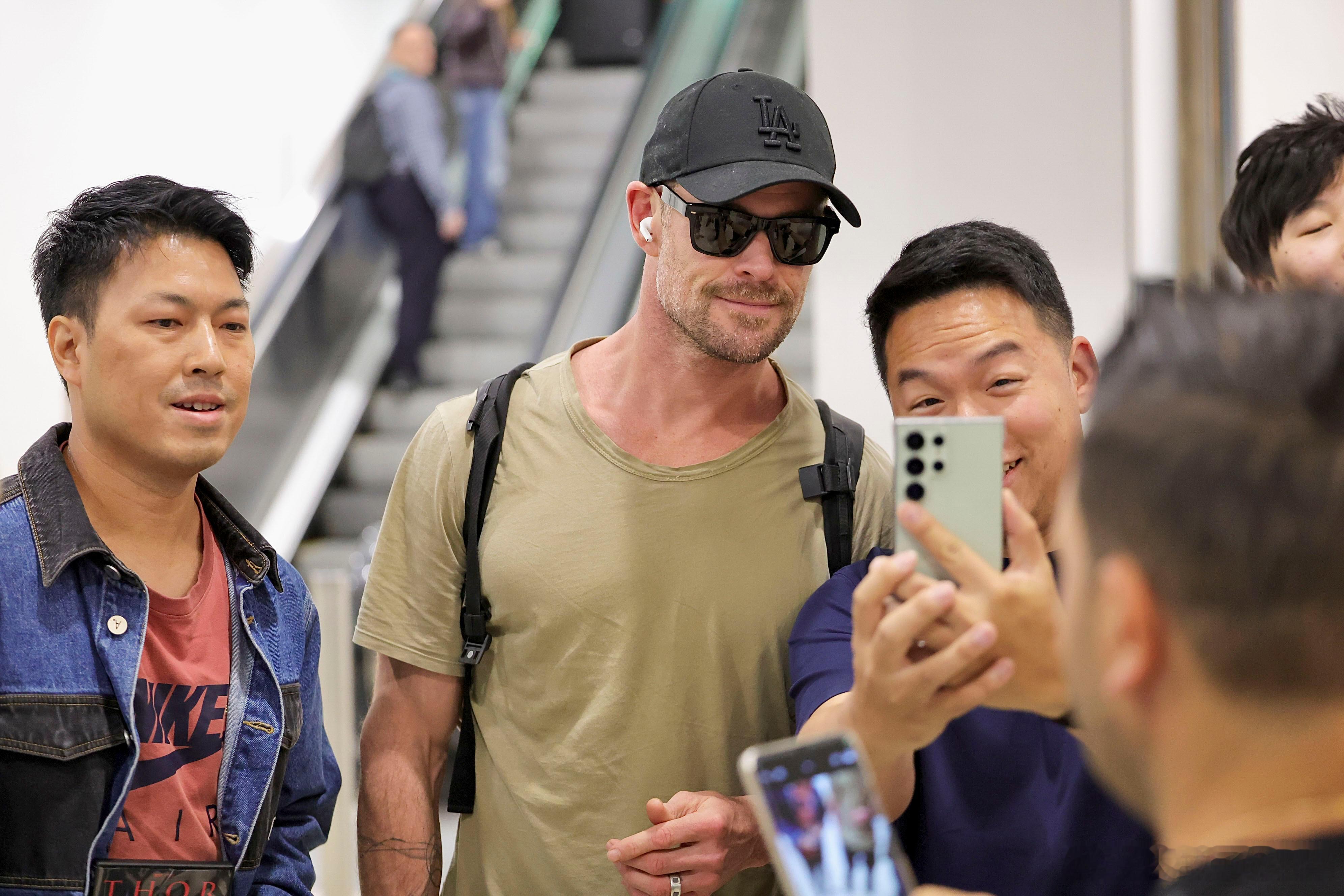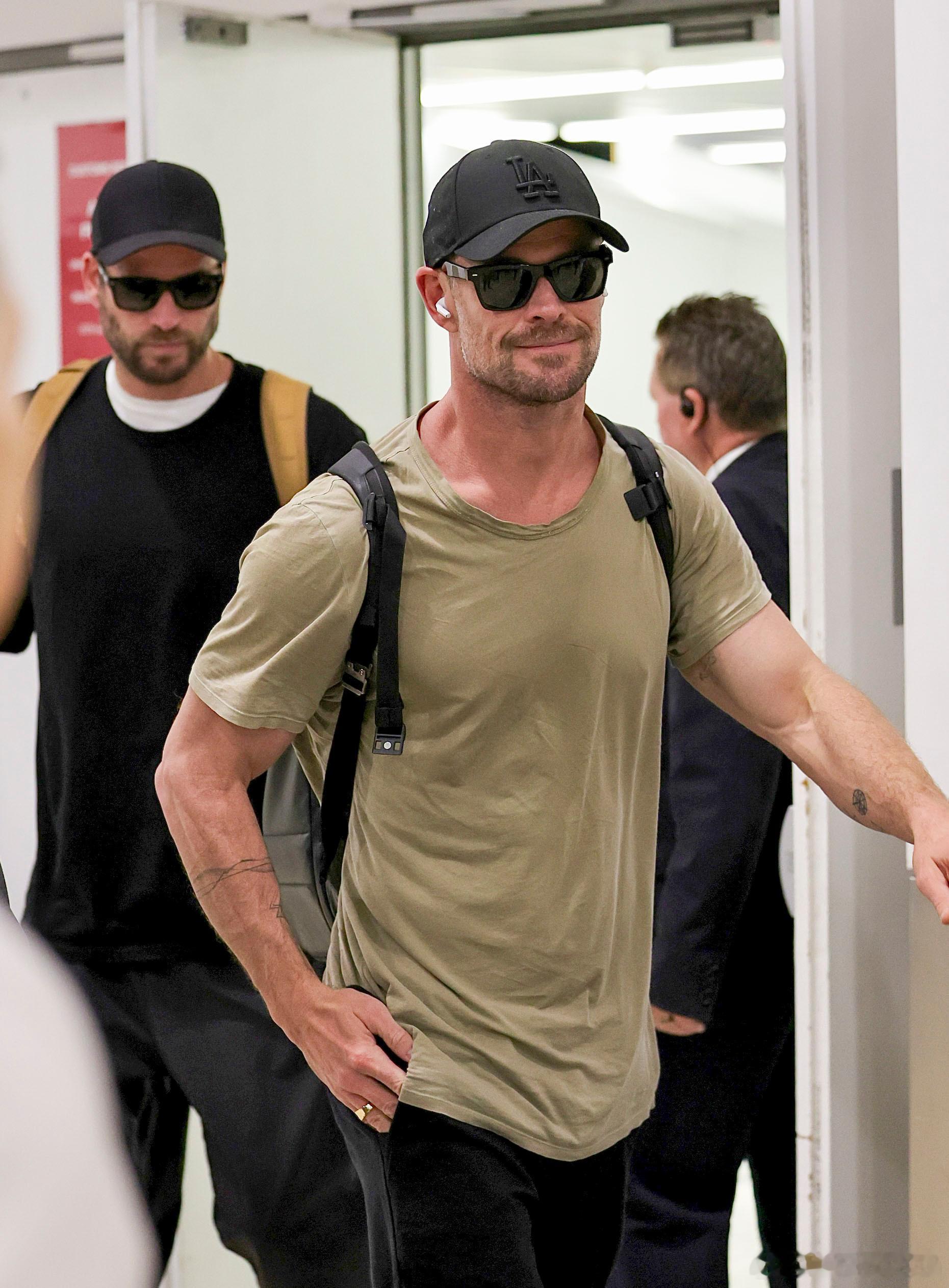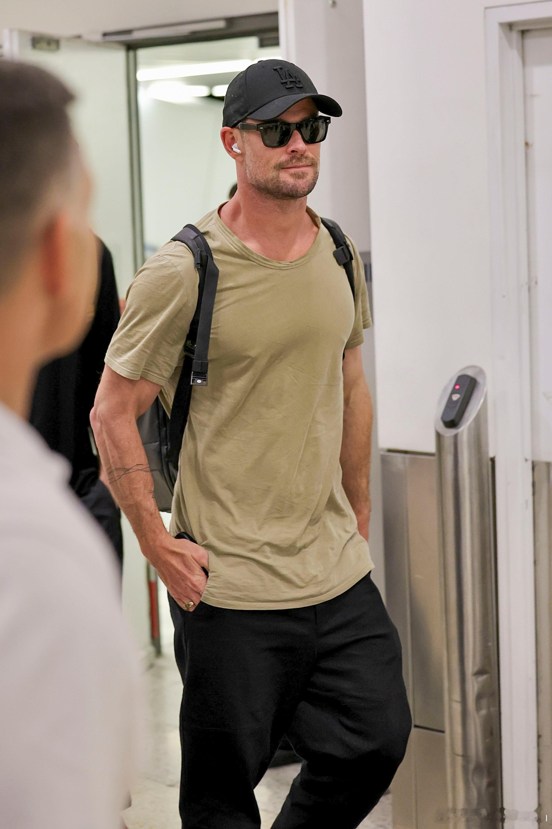 chrishemsworth克里斯海姆斯沃斯抵达老家澳大利亚悉尼机场,准备为新