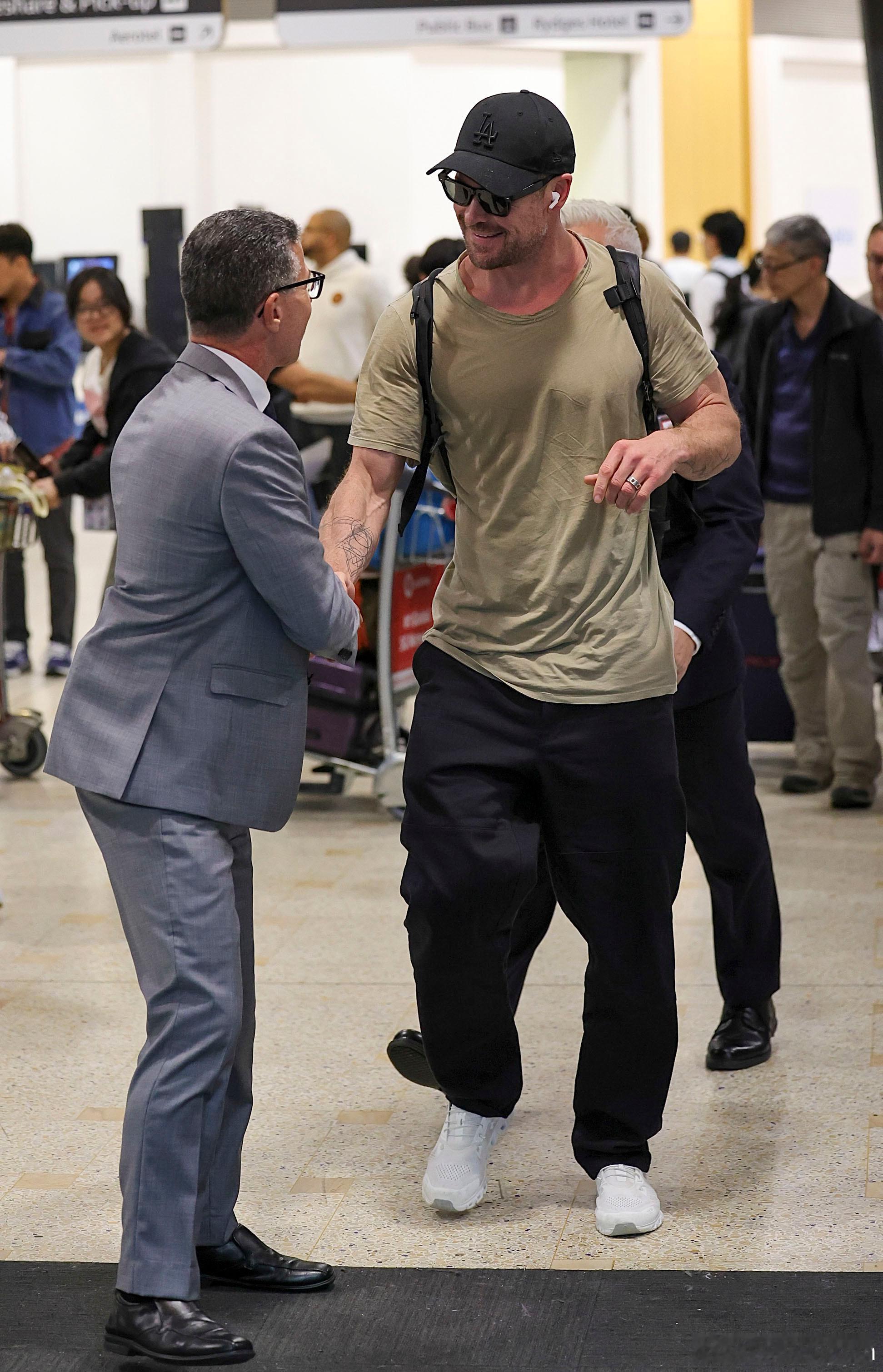 chris hemsworth克里斯海姆斯沃斯抵达老家澳大利亚悉尼机场,准备为新片《洛杉矶劫案》进行最后一站的宣传