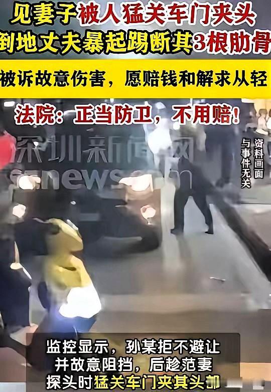 大快人心!河南男子为护妻一脚踢断对方三根肋骨,检察院:正当防卫,一分不赔! 男子开车送生病妻子去医院,按喇叭提醒对方让路,不料激怒对方,不仅被拽下车殴打,妻子还被猛关车门夹到脖子。情急之下,他出手护妻,导致对方三根肋骨骨折。 事后男子本想赔钱和解,没想到检察院调取监控后查明,对方全程挑衅、有错在先,男子是为保护家人反击,完全属于正当防卫,依法不负责任、不用赔偿。 这才是法律该有的温度!不纵容恶人,不委屈好人,保护家人天经地义。这样的判决,你支持吗? 正当防卫 护妻