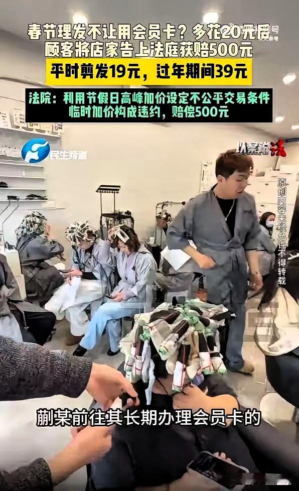 “玩不起!”山东菏泽这位先生太刚了,就为20块差价,直接把理发店告上法庭,结局真的大快人心。 蒯先生办了会员卡,理发只要19元,卡里还剩400多余额,春节去理发,店家却以系统升级为由,不让用卡,非要收39元现金。会员协议里根本没这条约定,只贴了张不起眼的手写通知,这明摆着是临时变卦、欺负消费者。 很多人遇到这事可能忍忍就算了,但蒯先生不妥协,选择用法律维权。法院最终判决,店家退还20元,还要赔偿500元,诉讼费用也由商家承担。 做生意靠的是诚信,契约不是想改就改,别把消费者的包容当成好欺负。为这点小利丢了信誉还吃官司,实在得不偿失。 遇到这种临时加价、违约耍赖的商家,你会像他一样较真维权吗? 消费维权 诚信经营