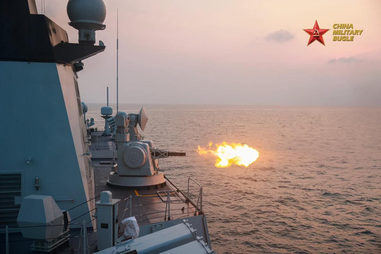 北部战区海军驱逐舰支队正在进行训练演练。