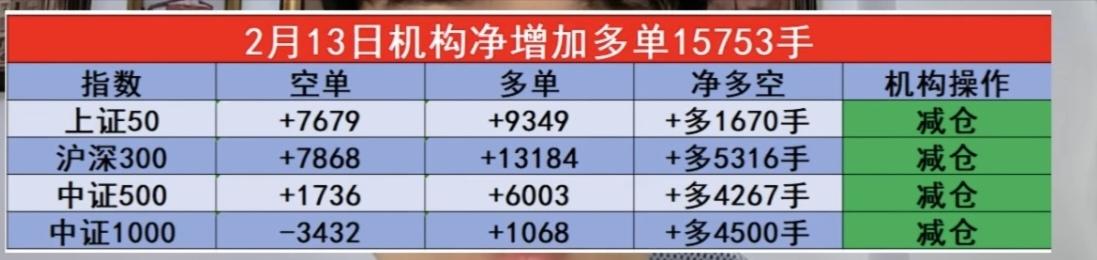 2.13周五晚间 中信、机构 资金大幅出逃 最新期指数据来了! 中信净增加多单4380手 机构净增加多单15753手 从期指数据看,今天中信是大幅减仓的,机构更是夸张,减仓1万5千多手,直接跑路了。 年后大盘,还要观察外围走势,控制好仓位,马年再战! 不作为投资买卖建议,仅供参考