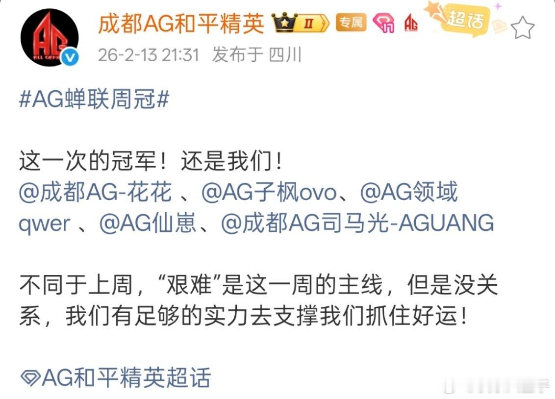 AG蝉联周冠 Nothing or BestAG蝉联周冠,倒数第三把吃鸡反超比分