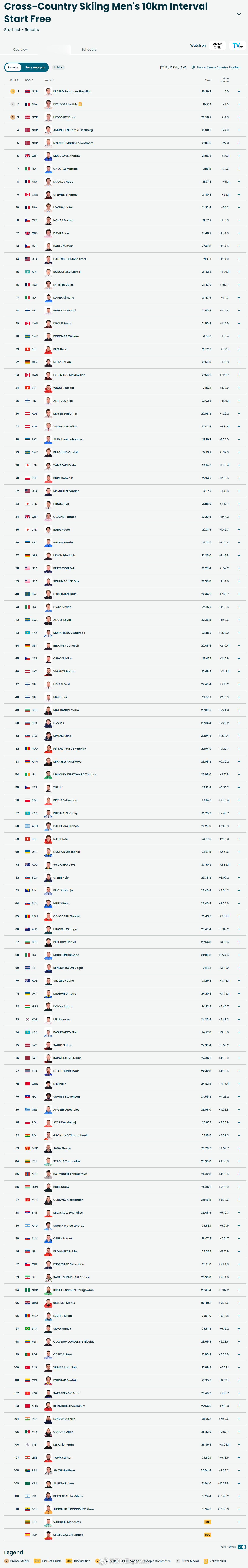 【冬奥越野滑雪挪威克莱博夺第八金平历史纪录】克莱博斩获奥运三金王冬奥会 2月13日,冬奥会越野滑雪男子10公里间歇出发自由式比赛结束,挪威传奇克莱博以20分36秒2夺得个人在本届冬奥会的第三枚金牌,总第八金,平了冬奥会多金王的纪录。成为继冬季两项传奇比约达伦、越野滑雪比约恩-戴利和比约根共同保持的8金纪录,这三位前辈也都来自挪威。法国选手戴斯洛吉和另外一位挪威选手赫德加特分获银铜牌。中国选手李明林名列第78。