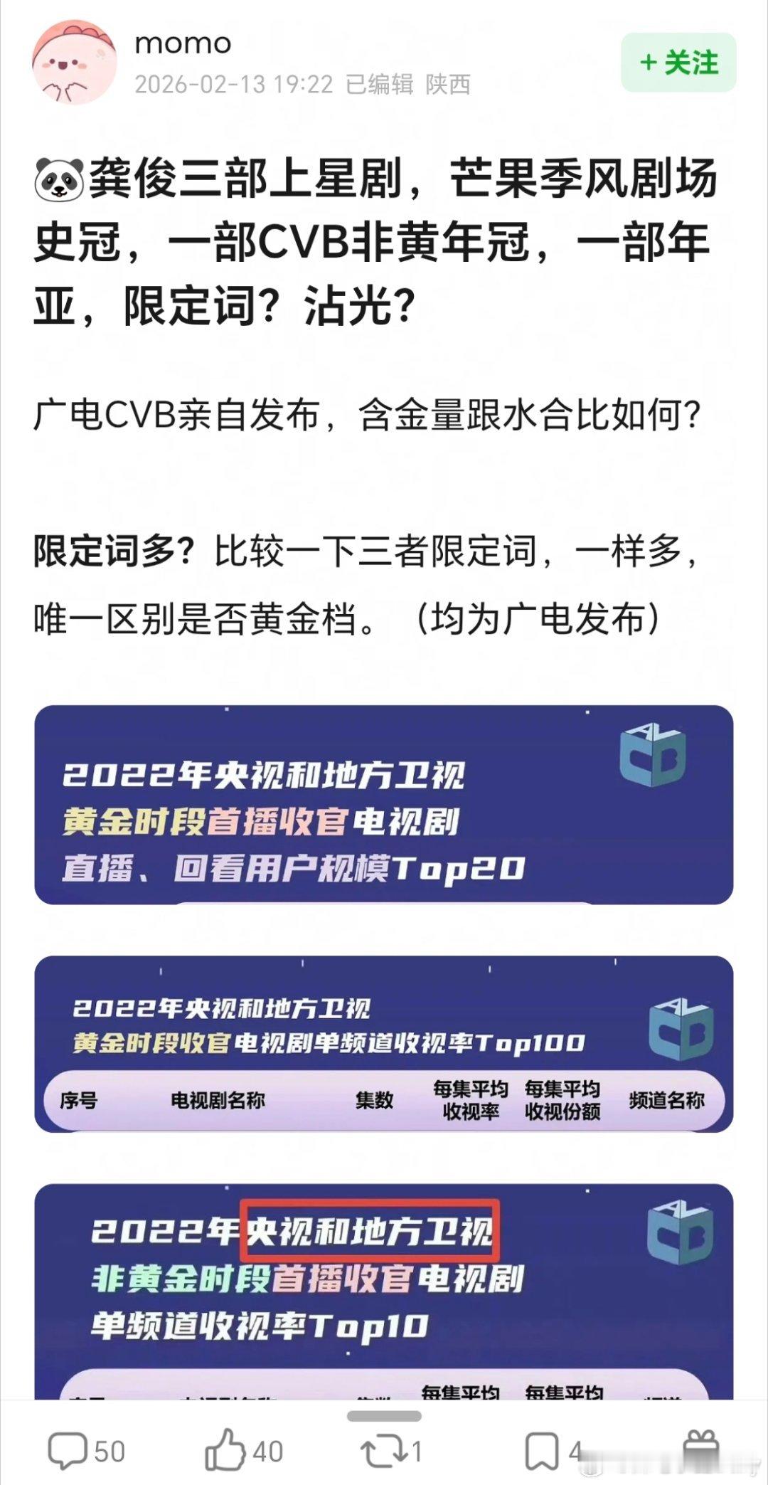 龚俊三部上星剧,芒果季风剧场史冠,一部CVB非黄年冠,一部年亚,由广电CVB亲自