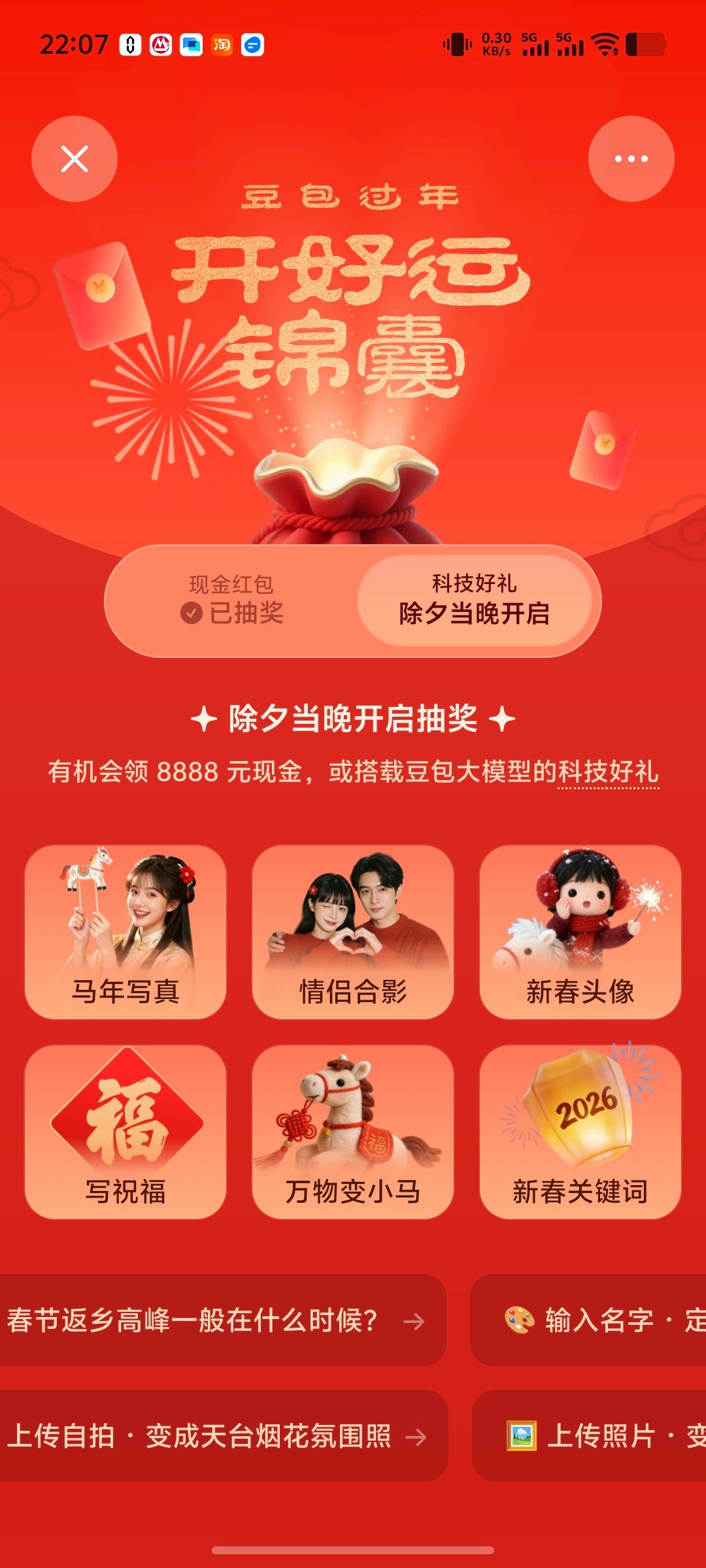豆包红包红包比我想象的大嘿。攻略:打开豆包—输入豆包过年—点过年锦囊—参加任意活