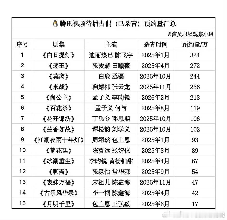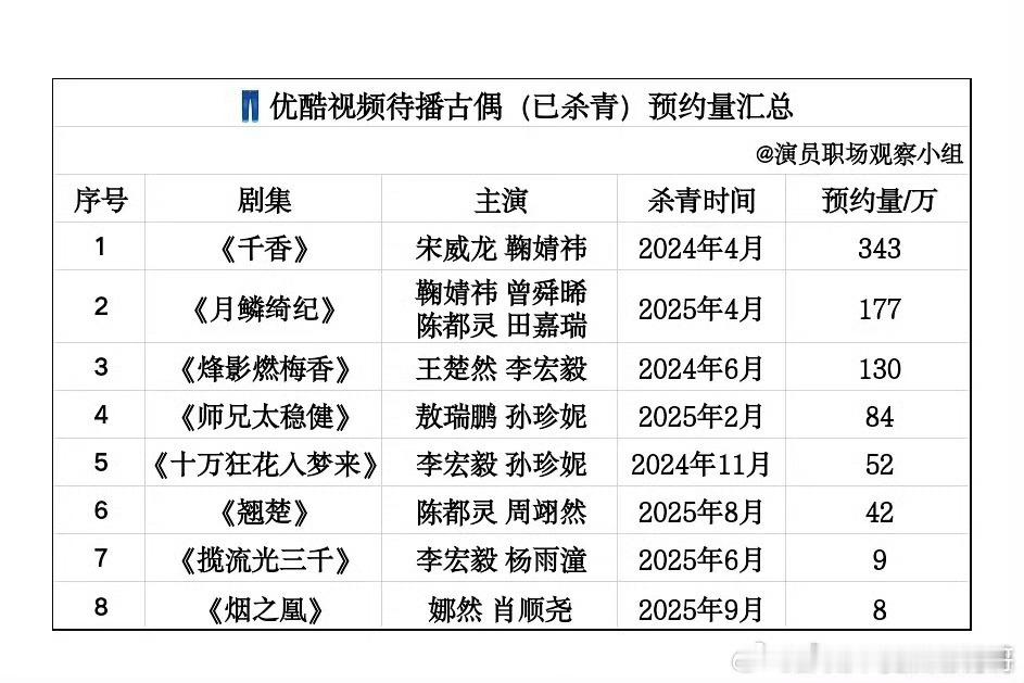 三平台待播古偶的预约量