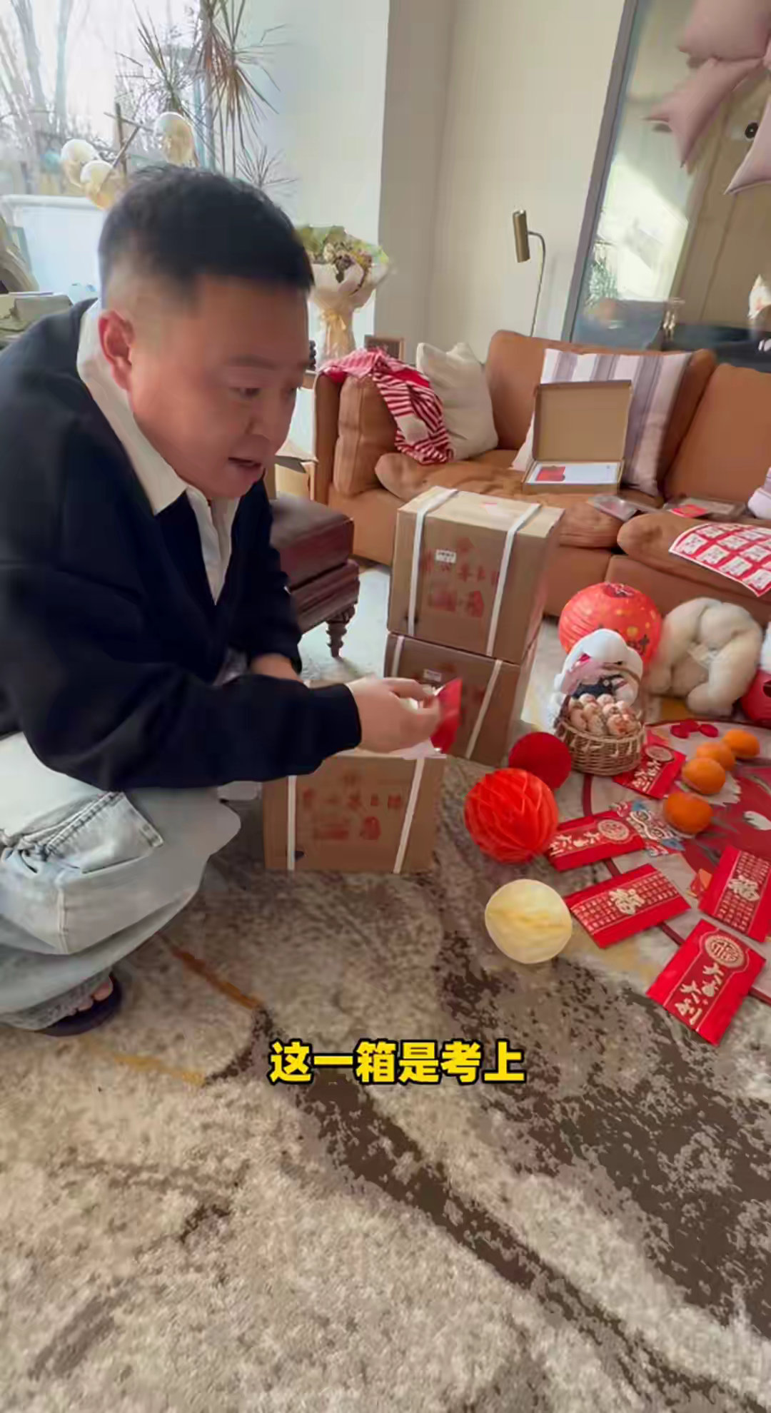 44岁阎鹤祥庆女儿满月,送金手镯金锁封3箱茅台,给足妻女仪式感