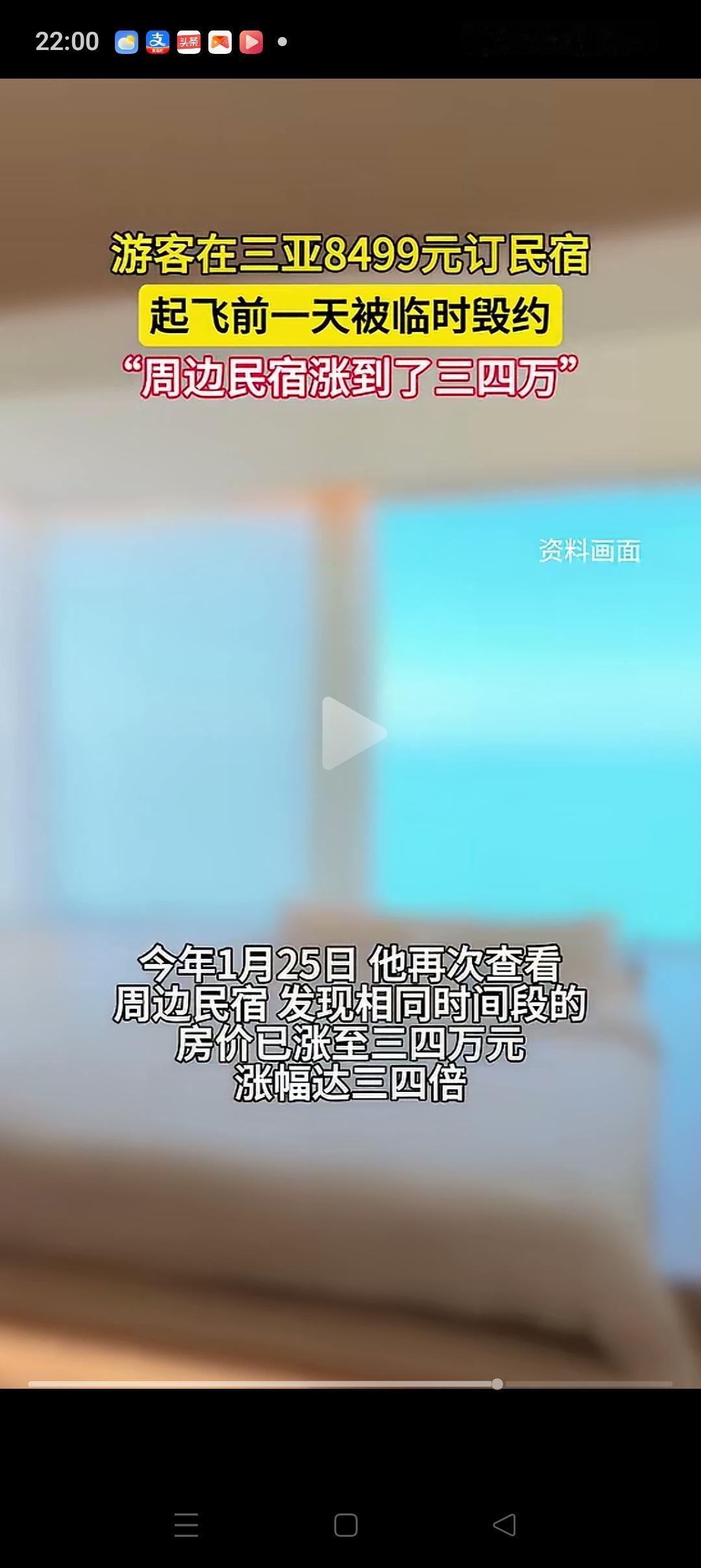 这就有点过分了吧!海南三亚,北京的李先生提前2个月预订民宿,花了8499元。不料等他准备带家人飞往三亚的前一天,却接到了三亚民宿老板的电话。老板根本不和他商量,直接解约。 李先生一时摸不着头脑,等他打开网站时,才发现当地民宿的价格,已经涨了好几倍。原本19晚仅需8499元,现在已经涨到了3-4万块钱。 作为旅游地区的商家,诚信是很重要的,如果你随意改变价格,那就会失去游客的信任。游客上当了一次,就再也不会来了。当地的商家生意会越来越难做,这都是连锁反应。 虽然目前酒店已经赔付了游客的损失,但是这种情况绝不能再发生。酒店应该把眼光放长远点,不要捡了芝麻丢了西瓜[酷拽][酷拽]