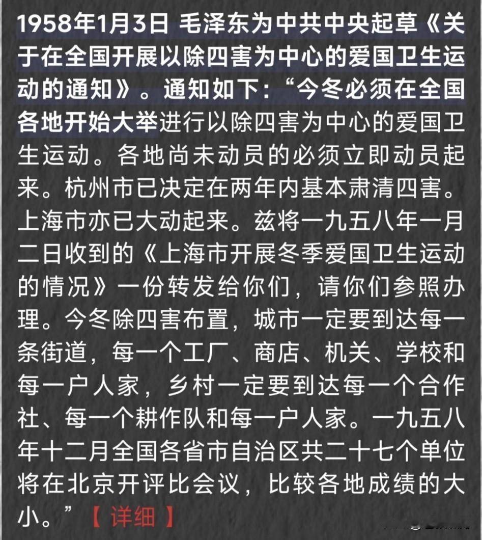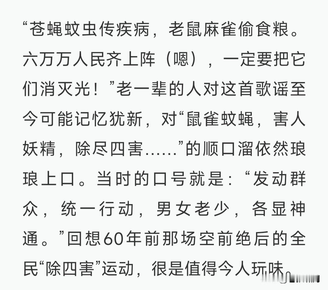 当年是五害!苍蝇蚊子老鼠臭虫麻雀!后因打麻雀害虫没了天敌而泛滥才恍然大悟变成了除四害!