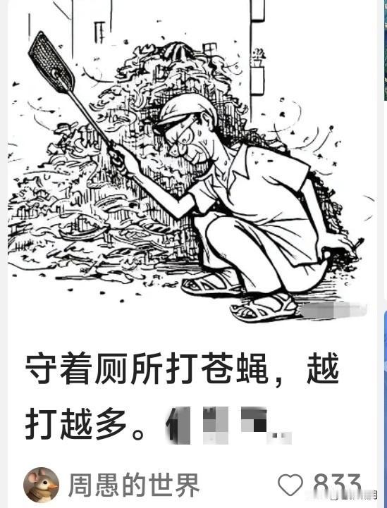 伟人曾经号召:开展爱国卫生运动,全面清除“四害”危害!“四害”指的是什么呢?苍蝇蚊子老鼠麻雀是也! 这四类“害人虫”里,苍狼最讨厌苍蝇!因其生于龌龊,却老想蹭人类美食。我们想让其绝迹,却不能实现! 什么原因造成的?因卫生条件没搞好。只有把所有的茅坑和简易便池,全部改成抽水马桶,苍蝇岂能生存? …………