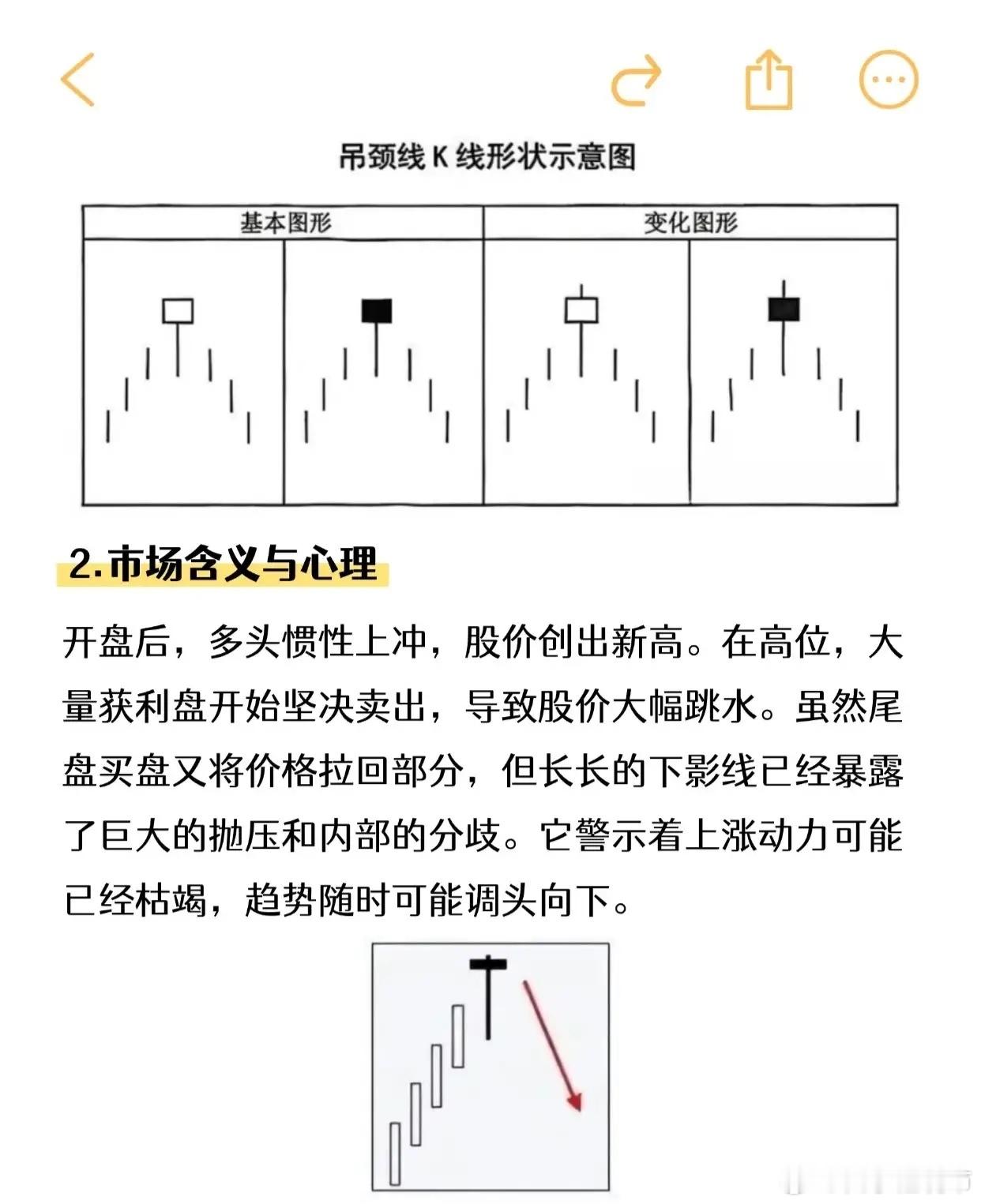 - 锤子线:出现在下跌趋势末端,小实体+长下影,表示探底回升,是买入信号(可等下一根K线站上实体、成交量放大时介入,止损设在锤子线最低点)。- 上吊线:出现在上涨趋势末端,形态与锤子线相同,但表示高位抛压大,是卖出信号(若下一根K线跌破实体、放量或阴线,应减仓/止盈,不追高)。- 关键口诀:长下影,看位置;下跌底,是锤子,盼涨;上涨顶,是上吊,要跑。