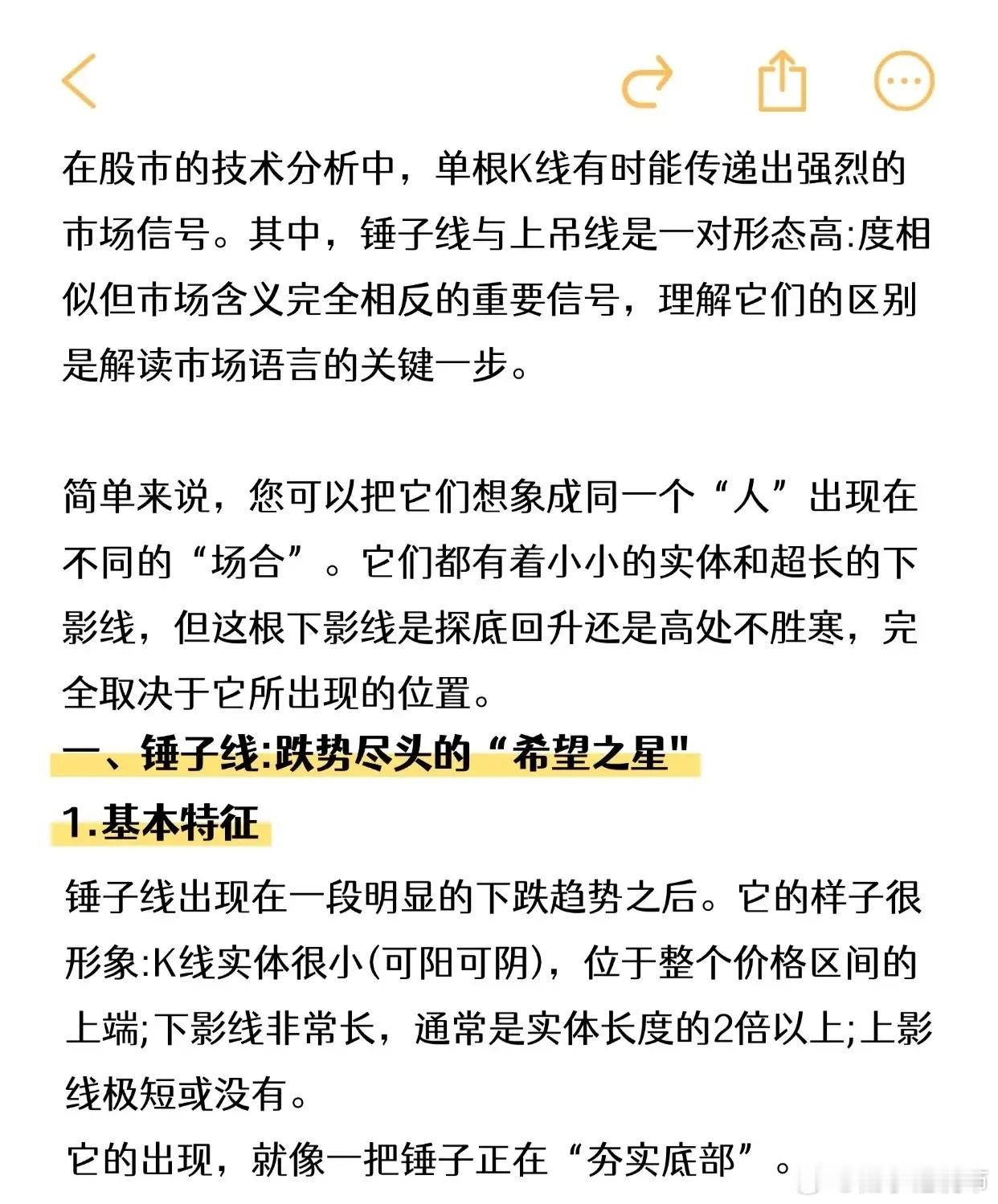 以下内容主要讲的是锤子线和上吊线两种K线形态在股票投资中的运用,核心可总结为:
