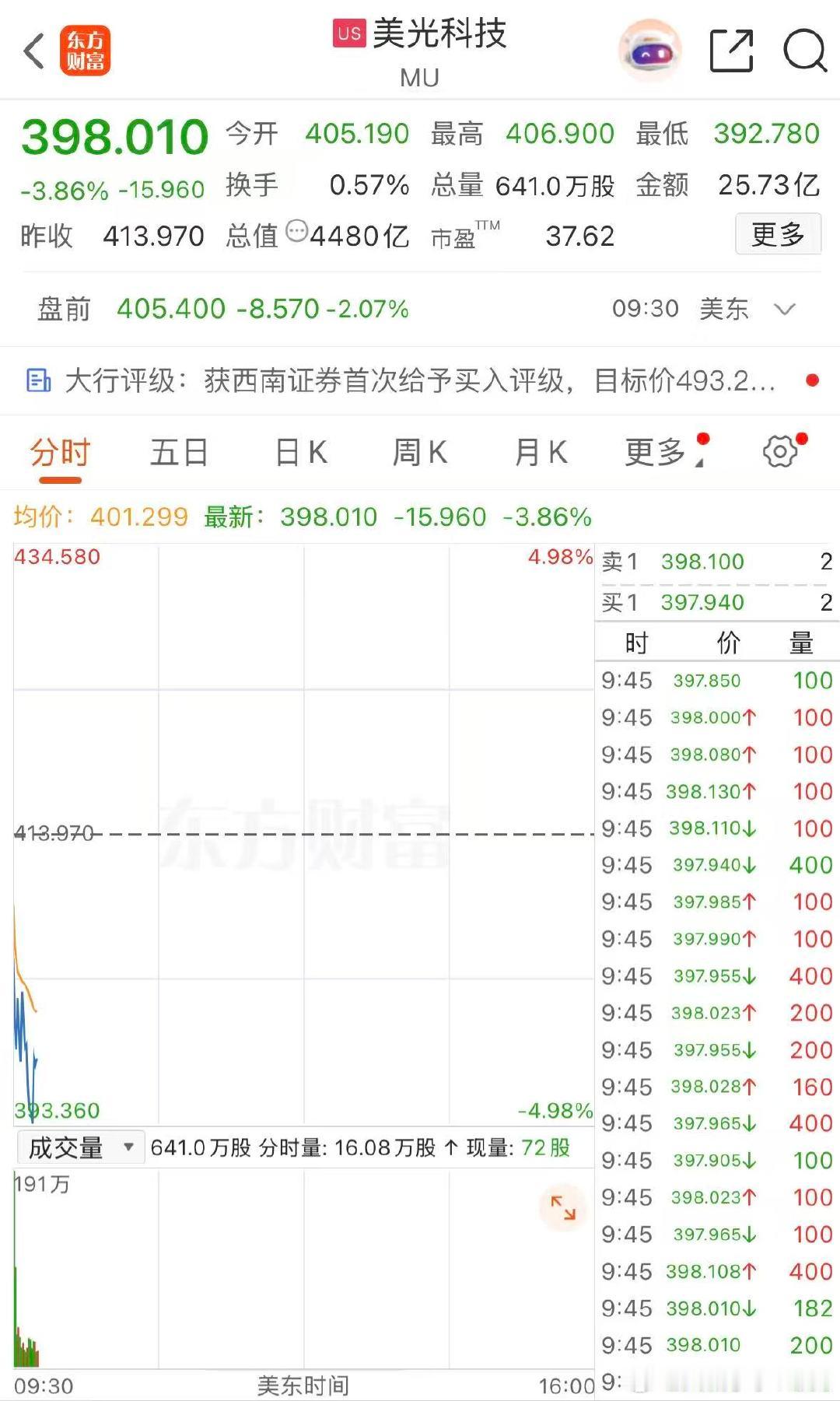 【美存储概念股走弱美光科技跌超5%】2月13日,美股存储概念股跌幅扩大,希捷科技跌超6%,西部数据跌超5%,闪迪跌超6%,美光科技跌超5%。闪迪跌超6%(财联社)