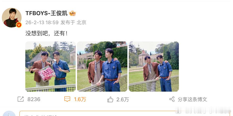 【追星赢家!王俊凯周杰伦合照再加3】王俊凯周杰伦到底还有多少合照 又给小凯高兴坏了!距离上次晒和偶像周杰伦的合照没几天,王俊凯再发3张和周杰伦合照,配文:没想到吧,还有! 王俊凯再晒和周杰伦合照