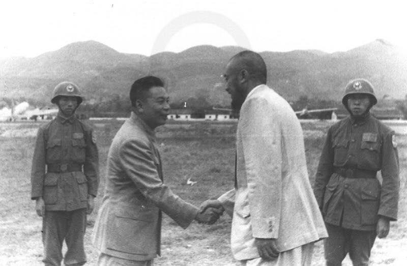 这张照片拍摄于1949年8月28日的重庆的一处机场,蒋经国(左侧,蒋介石的长子)在机场接待逃到重庆的西北军阀马步芳(西北军阀“马家军”的首领,以残暴统治和血腥镇压红军而闻名)的留影 1949年8月,中国人民解放军第一野战军在彭德怀的指挥下发起兰州战役,歼灭了马步芳的主力部队,兰州于8月26日解放。马步芳自知大势已去,于8月27日携带历年搜刮的黄金白银,从西宁乘飞机逃往重庆。 此时的蒋介石也在重庆,试图组织“西南防线”,做最后的顽抗。马步芳抵达重庆后,与蒋经国会面,并一同面见蒋介石,商讨所谓的“西北善后”对策。但此时国民党政权已摇摇欲坠,任何对策都已无力回天。 马步芳在重庆短暂停留后,经广州、香港逃往埃及,后定居沙特阿拉伯,最终客死他乡。而蒋介石父子也在不久后从成都飞往台湾,结束了在大陆的统治。