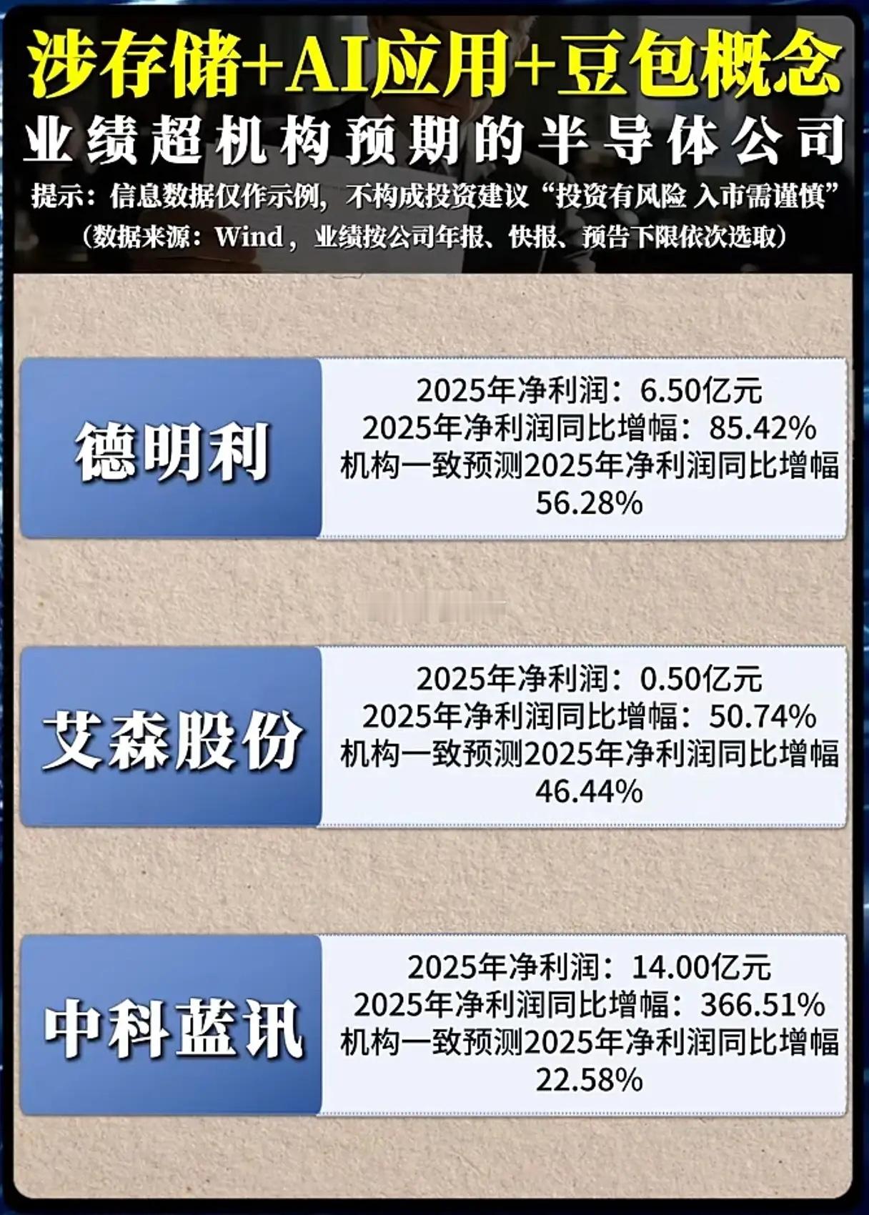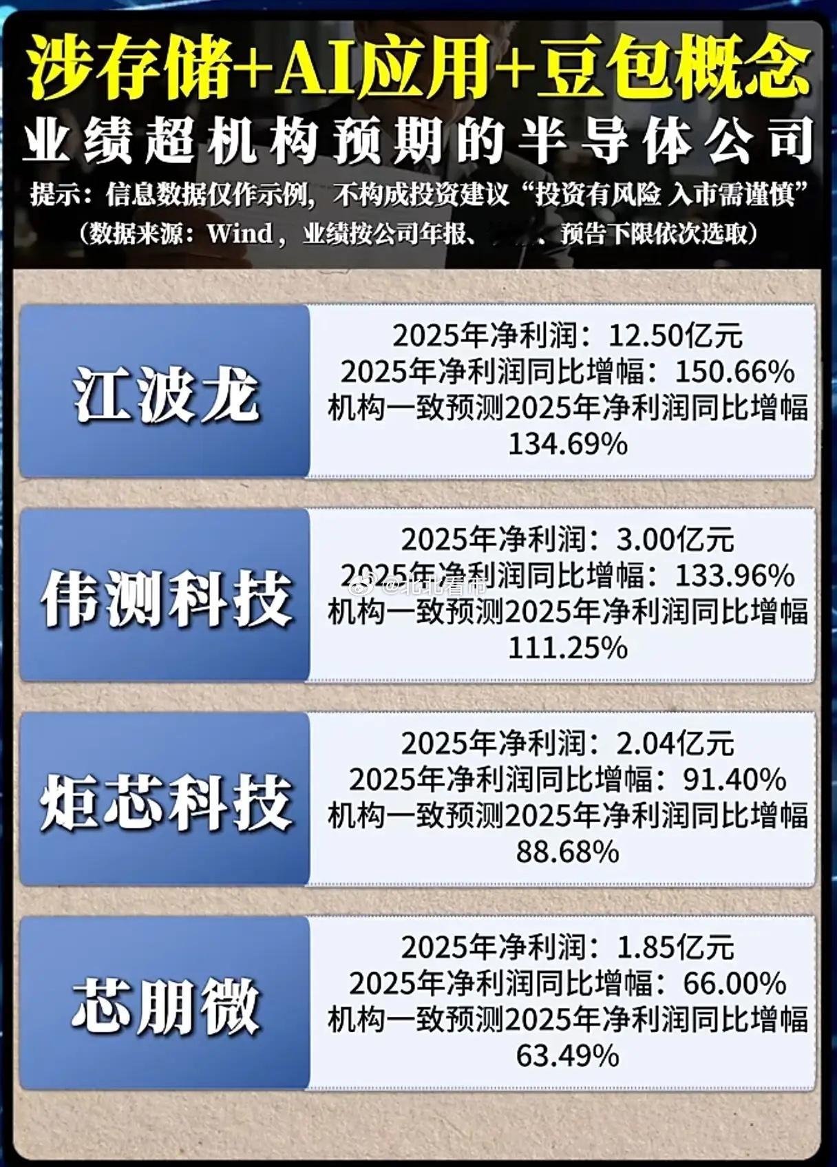 看看这些名字:佰维存储净利润8.5亿,增427%,远超机构预期的269%;江波龙12.5亿,增150%;中科蓝讯更是交出14亿净利润、同比增366%的成绩单,直接把机构预测的22.6%甩出几条街。