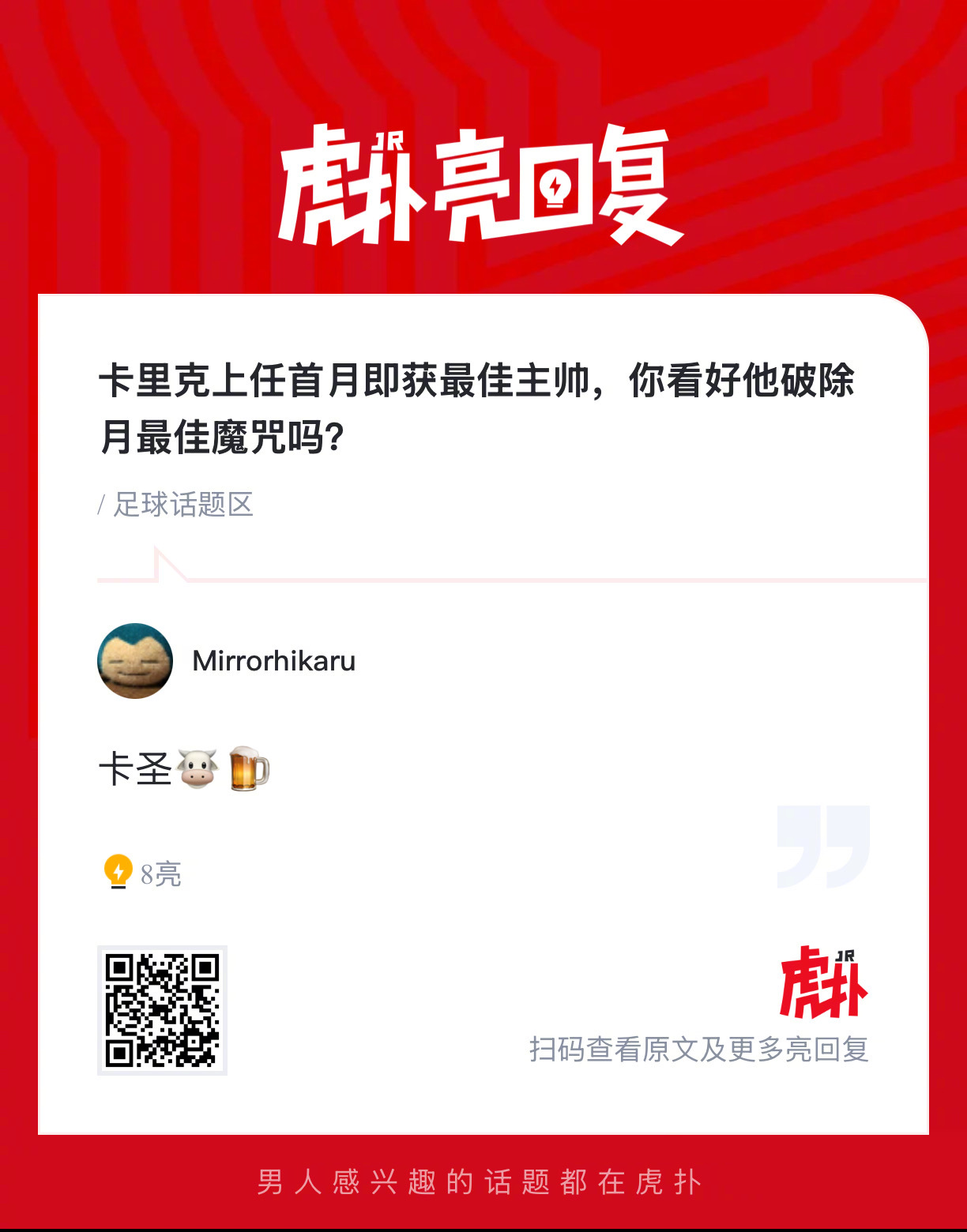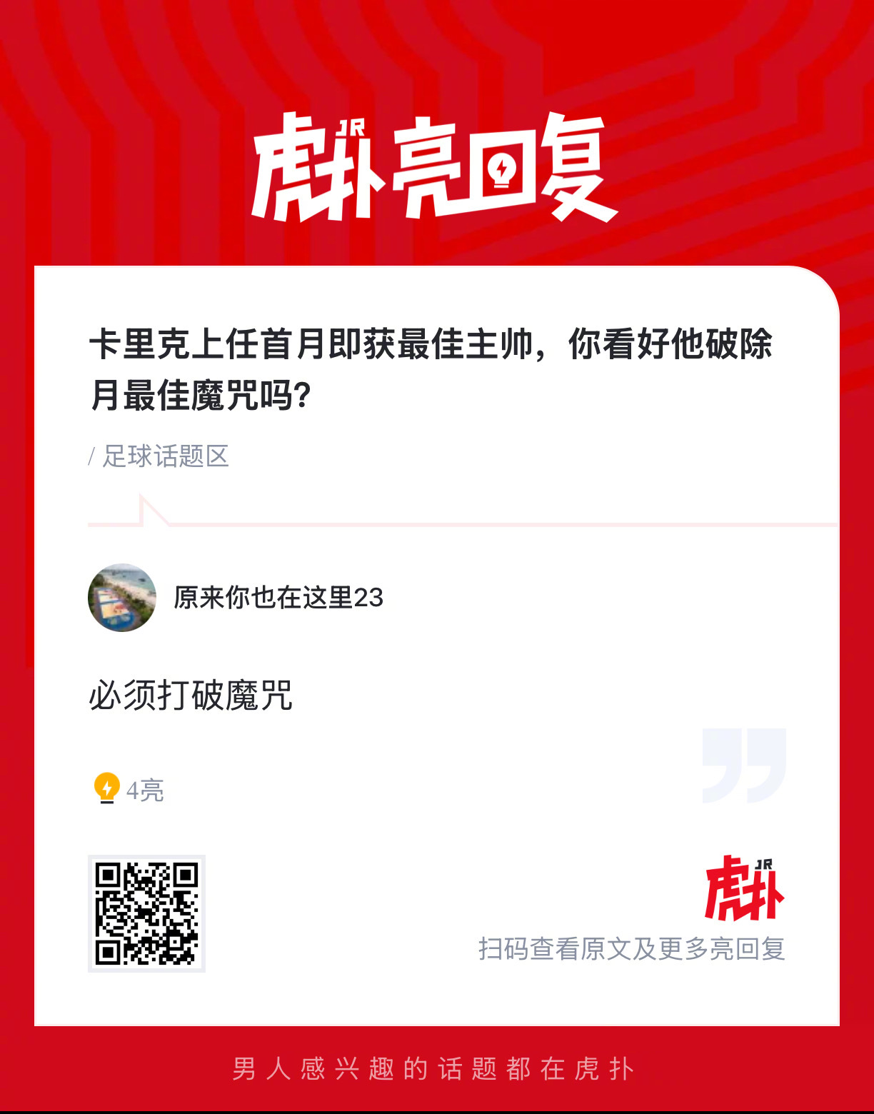 卡里克上任首月即获最佳主帅,你看好他破除月最佳魔咒吗?