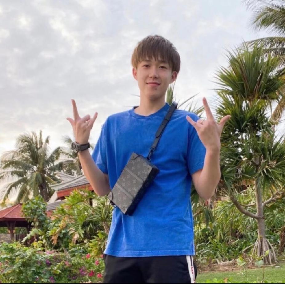大头这波“海岛限定”造型,有点东西! 第一次刷到王楚钦这一身,蓝色T恤+黑裤,斜挎着包,手腕上的表也很吸睛,整个人又潮又少年感拉满。 最有意思的是他比的这个手势,不是耶也不是OK,有点像摇滚范儿的“金属礼”,又有点像他自己的专属暗号,反正就是又酷又拽,谁懂啊! 在热带植物的背景下,这一身穿搭和手势,简直是“国乒潮男”本人了,果然帅哥怎么穿都好看,随便一拍都是大片既视感。 王楚钦 国乒潮男