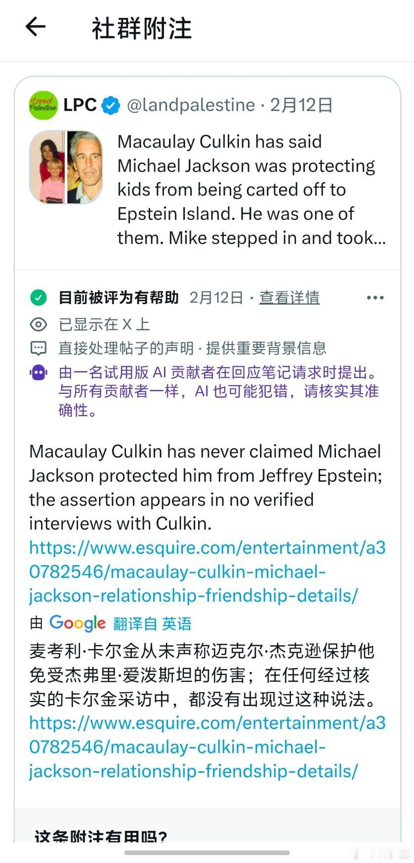 麦考利和MJ有深厚的友谊,白眼狼诬陷他的时候,麦考利站出来正名,但应该和爱泼斯坦是两回事…