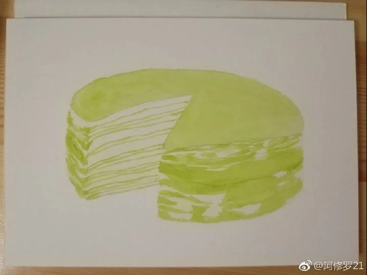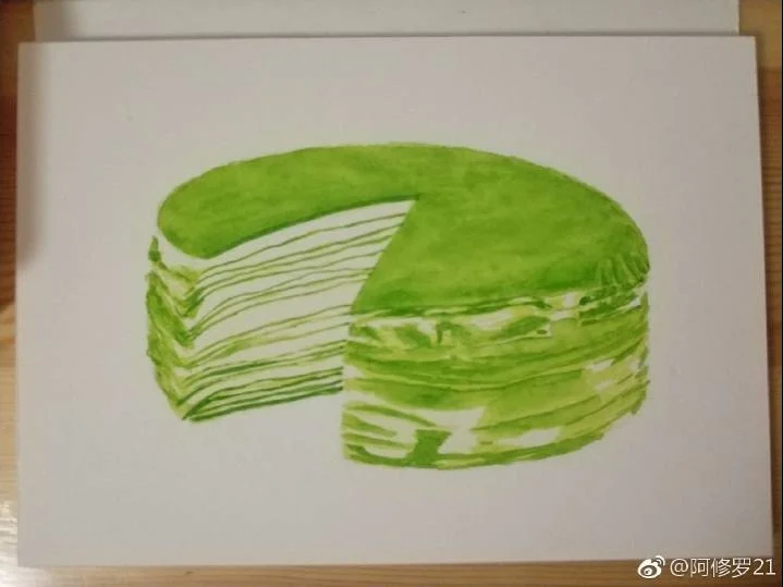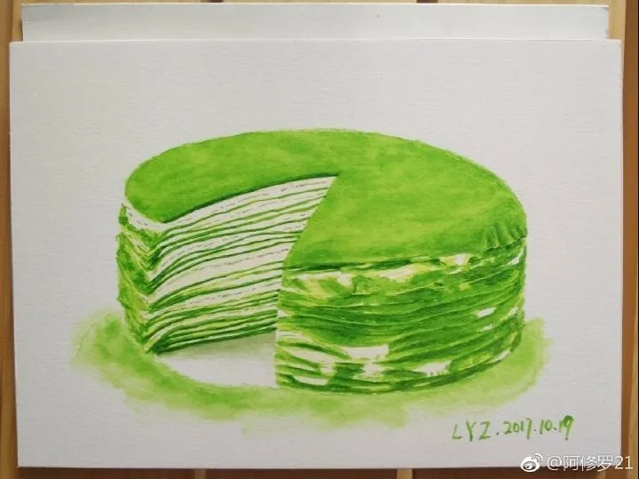 水彩甜品。抹茶千层蛋糕。