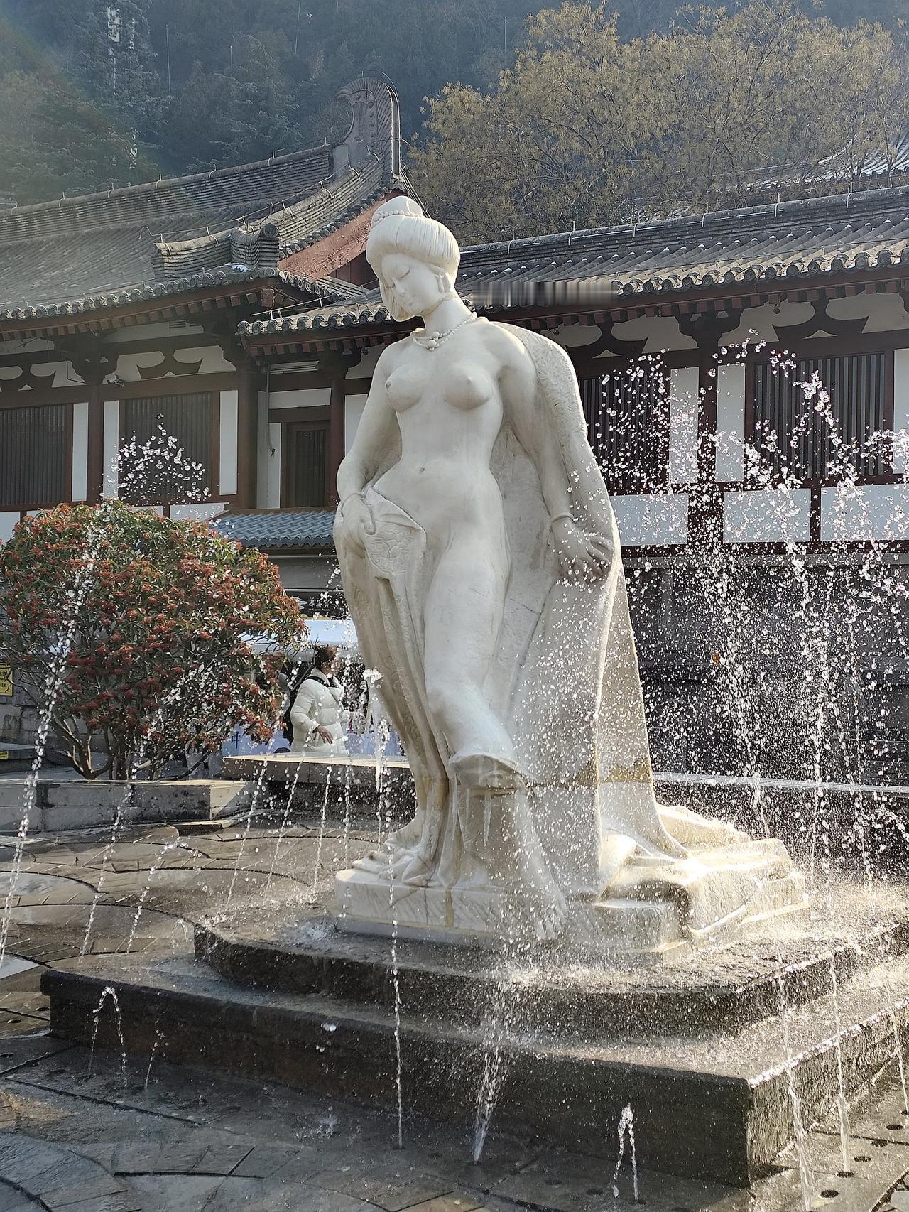 2026年开年第一场风波,舆论绕着这座杨贵妃雕像转了又转。说低俗的、说败坏的,吵了半个月,热搜上了又下。最近再路过华清池,她还在那儿。半躺的姿势没变,丰腴的线条没变,眼神还是那样,微微垂着,像看水,像看山,也像看眼前来来去去、举着手机拍她的人。 忽然觉得挺有意思——一千多年前她在长安,被骂红颜祸水;一千多年后在西安,又被骂有伤风化。长安也好,西安也罢,这座城的风总是很硬,雨总是很冷,骂名总是来得很快。华清池的水温了又凉,唐朝的月亮照进2026年的雾霾,贵妃娘娘还是那个姿势,不辩解,不躲闪,不迎合。 石头的沉默,比所有喧嚣都长久。忽然懂了——真正有分量的东西,从来不怕被议论。因为议论本身就是一种仰望。西安的城墙能扛千年风雨,自然也能扛几句口水。风吹吧,雨打吧,热搜散尽之后,她还是她。想去看她的人,依旧会去。