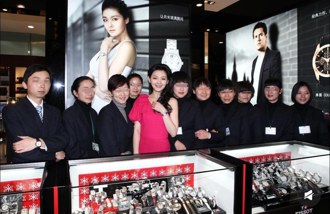 其实不只是大S仪态很好,仔细观察就会发现,大部分女明星的仪态都非常出众,毕竟是公众人物,拍戏、拍广告、出席活动都靠形象吃饭,平时对体态、肢体管理肯定特别严格。 就拿大S当年为瑞士天梭手表代言来说,和工作人员一起合影,她站在C位,一眼就能被看到,不只是位置显眼,更是气质和仪态太突出,脖子修长,整个人往那一站,就是鹤立鸡群的感觉。 再看秦岚为某知名手表代言时也是一样,和工作人员同框,仪态端庄大方,气质完全不一样。还有林志玲、林心如也是如此,和普通人站在一起,体态、肩颈线条都格外优越,脖子显得修长,在人群里特别抢眼,自带明星气场。 这就是真正的明星底子,哪怕不看颜值,单靠仪态和气质,就足以在人群中脱颖而出。