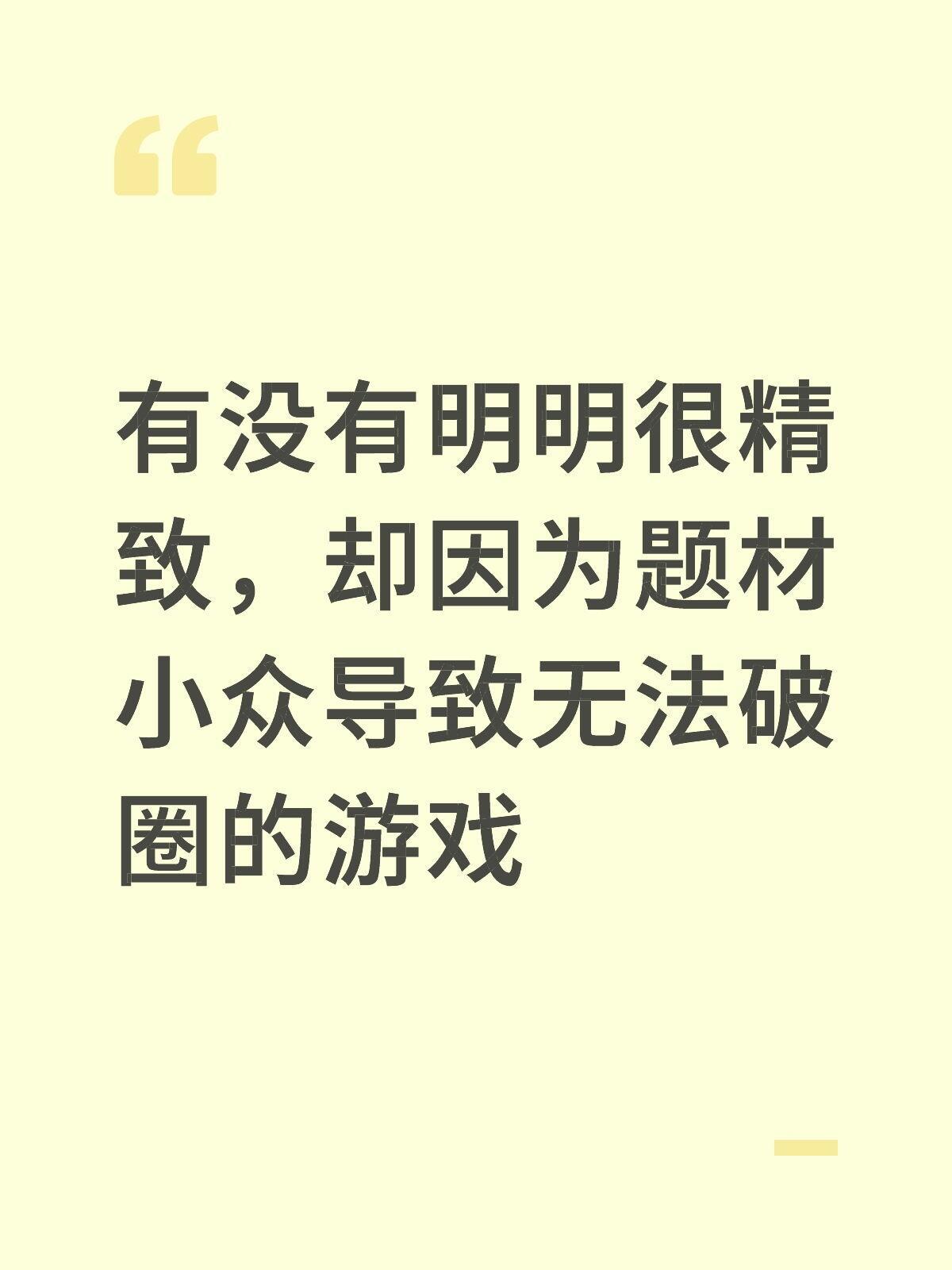有没有明明很精致,却因为题材小众导致无法破圈的游戏