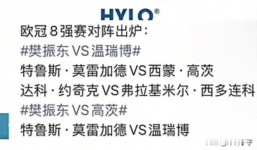 樊振东和小莫正在火热对练中!我们的巴黎奥运会冠军和副冠军,今天不是对手,是队友,今天乒乓球欧冠联赛四分之一决赛进入第二轮,樊振东、莫雷加德、弗朗西期卡、达科代表萨尔布吕肯俱乐部坐镇主场迎来与陈垣宇、温瑞博、周启豪所在的亨尼邦俱乐部的第二回合交锋,阵容看点十足。 对阵表出来了!第一场樊振东VS温瑞博! 从实力来看,是萨尔布吕肯赢胜出的概率是90%,你觉得呢?
