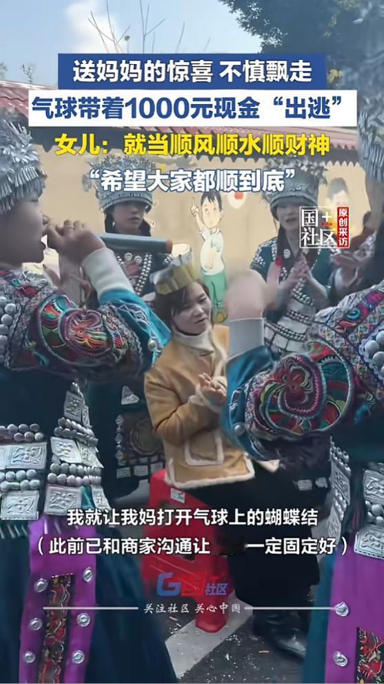 “亏大了!”2月11日,四川泸州,一女子为了给妈妈生日惊喜,便往气球上挂了1000元,没想到妈妈亲手拆开时,气球没有用绳子绑住,缓缓往天上飞去,当时众人都没反应过来,只能眼眼睁睁看着1000元就这么没了!网友:捡到的人有福了! 四川泸州,2月11日。本来是热热闹闹的生日宴,二十多桌亲朋好友,在那一瞬间,几百双眼睛不看寿星,也不看菜,而是整齐划一地仰着脖子,死死盯着天空。 他们在看什么?一个正在急速缩小的红色斑点。那不是普通的氢气球,那是一叠被精心捆扎好的、真金白银的一千块钱现金。 就在几秒钟前,这场“放飞仪式”还是宴会的高光时刻。刘女士为了给母亲祝寿,特意找策划公司定制了这个“飘钱气球”。 按照剧本,母亲解开礼盒,气球悬浮在半空,钞票垂在眼前,全场欢呼,皆大欢喜。可现实往往就爱在最贵的环节出岔子。墨菲定律在那一刻精准得令人发指事情只要有变坏的可能,它就一定会发生。 刘女士其实是个细心人。在给商家下单的时候,她不仅是付了钱,还附赠了极其明确的指令:气球要能飘起来,但绝不能飞走。这话听起来像是废话,但在执行层面,这就是生死线。遗憾的是,商家显然低估了氦气的物理属性,或者高估了他们那根隐形“安全索”的牢固程度。在最关键的底部固定环节,出现了一个致命的真空。 当老母亲满脸笑容地松开手,原本预想中的“悬浮”并没有出现。没了束缚的气球像是一匹脱缰的野马,瞬间挣脱了地心引力。一千块钱,就这么在众目睽睽之下,坐着特快专列直冲云霄。 现场的空气大概凝固了有足足几秒钟。等大家反应过来这不仅仅是个气球,而是一笔不小的财富时,它已经变成了一个遥不可及的红点,最终彻底消失在视野尽头。 事后刘女士报了警。但这更像是一种尽人事听天命的无奈之举。警察不是魔术师,想在茫茫天空中找回一团气体和几张纸币,难度不亚于大海捞针。 这时候,商家的反应倒是挺快,拿出了典型的商业止损方案:退还定制气球的全款,再额外赔偿200元。 在商言商,这是一笔划算的买卖。商家试图用一千二百元左右的成本,平掉这笔烂账。 但刘女士拒绝了。 这一刻,事情的性质其实已经变了。这不再是关于一千块钱的经济纠纷,而是关于“预期管理”的崩塌。 刘女士花钱买的不是那个橡胶球,也不是那几张纸币的展示权,她买的是母亲那一刻的惊喜,是全家人的欢笑。这个“情绪商品”在气球飞走的那一刻,就已经彻底破碎了,根本不是几百块钱能胶合起来的。 最有意思的转折出现在那位“寿星”身上。面对这场昂贵的意外,老母亲没有拍大腿,也没有埋怨女儿乱花钱,反而在饭桌上乐呵呵地解围:“飞了就飞了,图个热闹嘛。” 这就是长辈的智慧。她把一场可能引发家庭矛盾或消费纠纷的“事故”,轻描淡写地重新定义为了一段只有他们家才有的“故事”。 既然钱追不回来了,那就别把好心情也搭进去。在这种豁达情绪的感染下,刘女士的心态也发生了奇妙的化学反应。既然这笔钱注定要属于天空,那就让它成为一份盲盒般的礼物吧。 她后来在社交媒体上说,祝那个捡到气球的陌生人顺风顺水,好运连连。你看,这本来是一场关于失误和损失的闹剧,最后却以一种近乎浪漫的方式收了场。那一千块钱虽然没了,但这家人展现出的气度,恐怕比那只气球飞得更高。