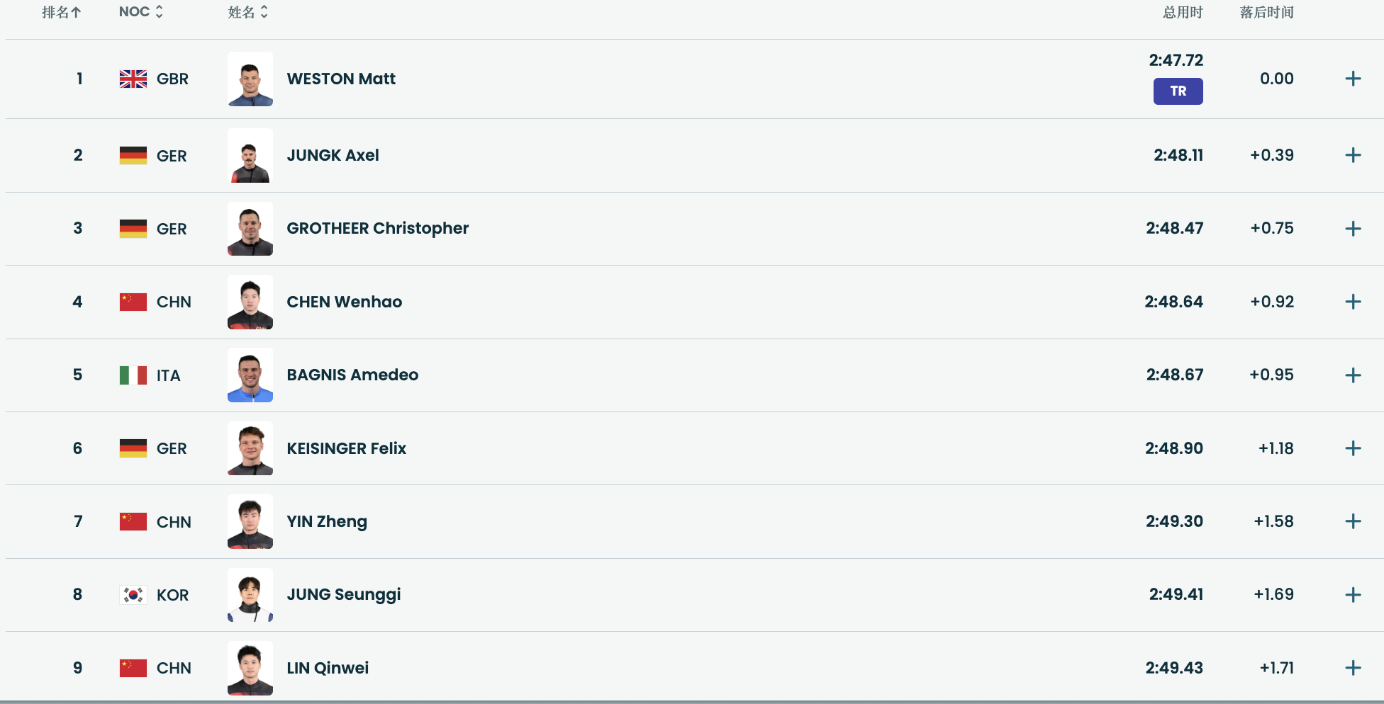 #陈文浩钢架雪车三轮后排名第4#米兰冬奥会男子钢架雪车第3轮结束,🇨🇳第三滑55秒96,总用时2分48秒64排名第4;🇨🇳第三滑56秒08,总用时2分49秒30排名第7;🇨🇳林勤炜第三滑56秒21,总用时2分49秒43排名第9。