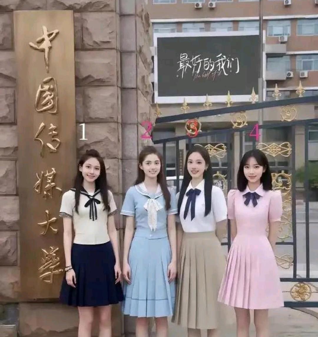 假如你是导演,这里面挑一个做女一号,你会选哪个? 一开始我眼都直了。 1号那小甜妹,笑起来跟我闺女小时候似的。 (我闺女现在上高中,跟我说话都嫌我烦,还是小时候可爱) 可转念一想,不对啊。 现在的剧,傻白甜活不过三集。 (上次我追个剧,女主被女配陷害,连个反击都不会,我气得把遥控器都摔了)   二、 再看2号,一身蓝裙子,像我闺蜜在国企当主管的样子。 走路带风,眼神里有东西。 (我闺蜜现在管着二十多个人,说话都带官腔,我都不敢跟她开玩笑) 3号呢,白衬衫配百褶裙,像教导主任家的闺女。 规规矩矩,一看就是三好学生。 (我上学那会,最怕教导主任,她一瞪眼,我腿都软) 4号最扎眼,粉裙子,跟我刷到的网红一模一样。 大眼睛,尖下巴,笑起来都一个模板。 (现在的网红,十个有八个是这脸,我都分不清谁是谁) 你会选哪个呢?