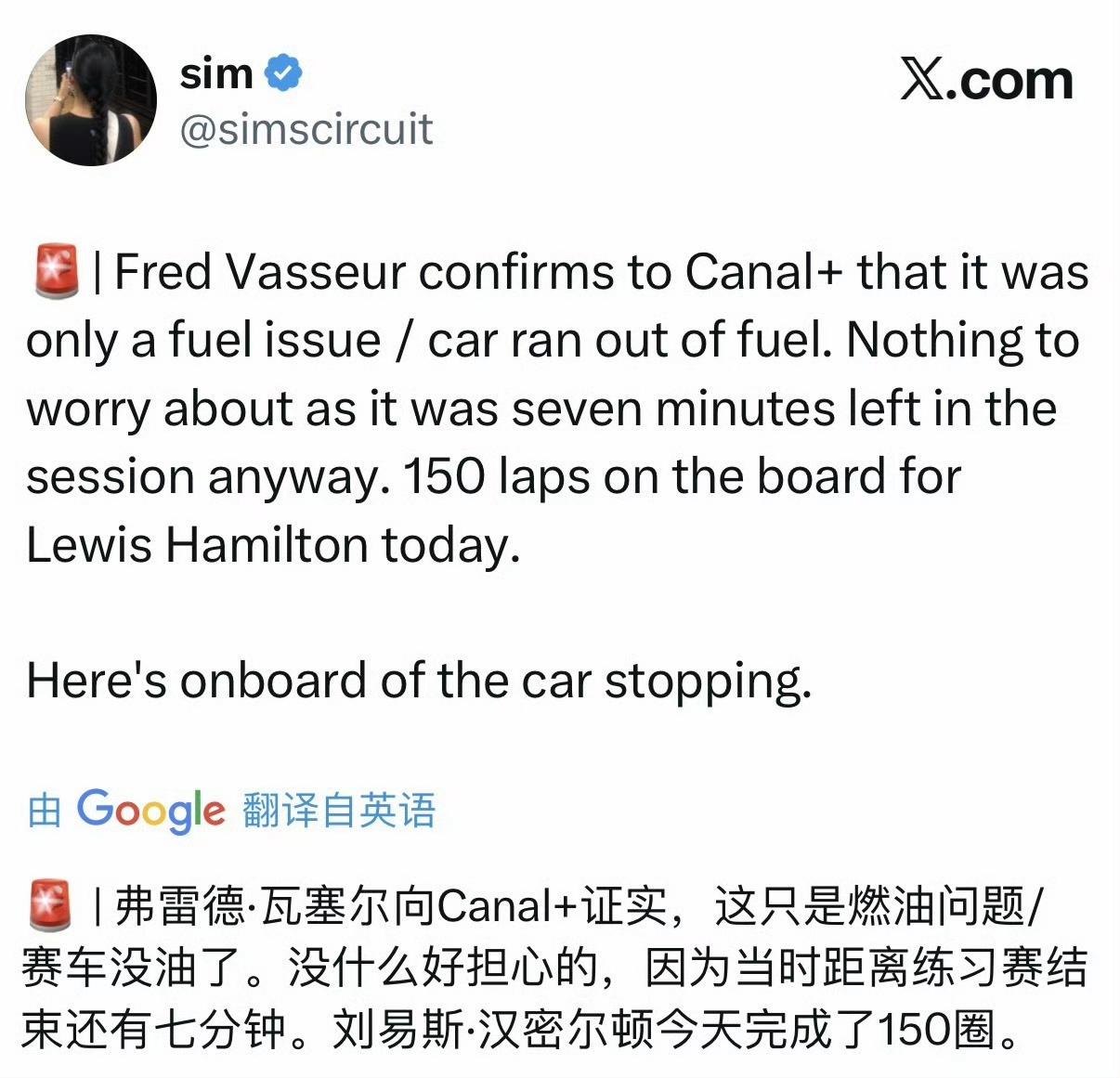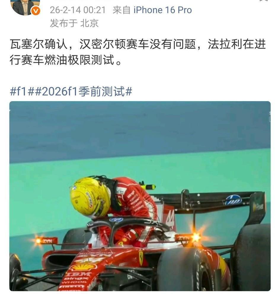 季前测试,汉密尔顿的赛车停在了赛道旁……事后领队瓦塞尔确认赛车没问题,是在做燃油极限测试。 为什么我感觉这句话像是在阴阳怪气,可能是自媒体看多了。