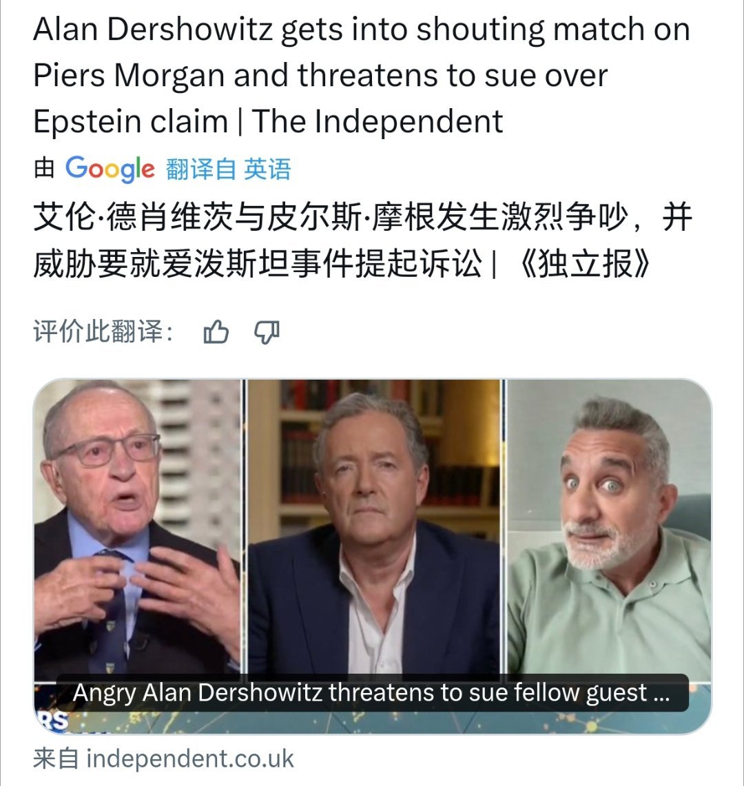 德肖维茨:因为爱泼斯坦事件骂我的人属于反犹太反以色列的人,我可能会起诉。