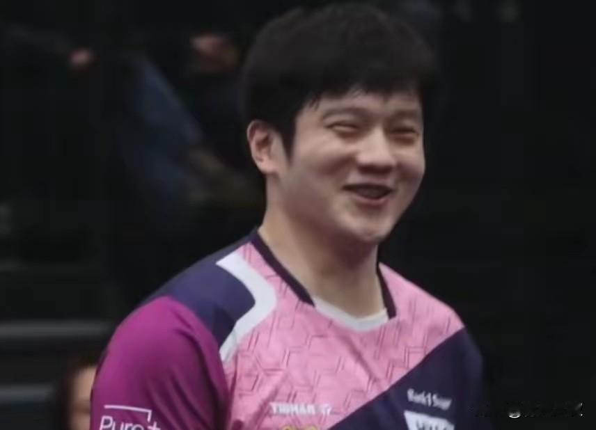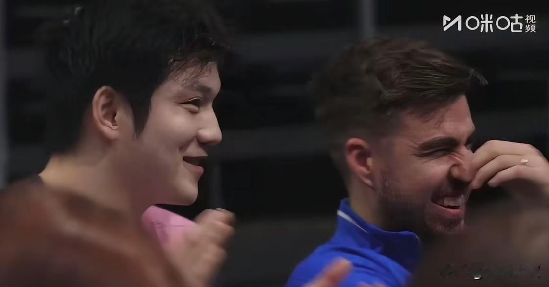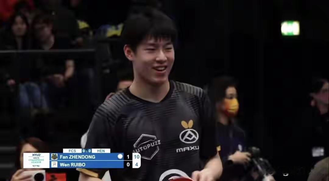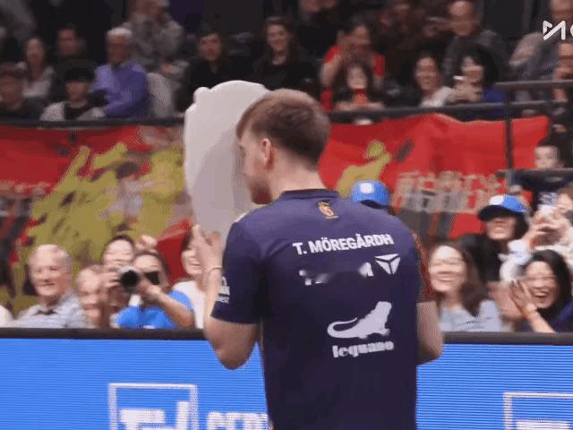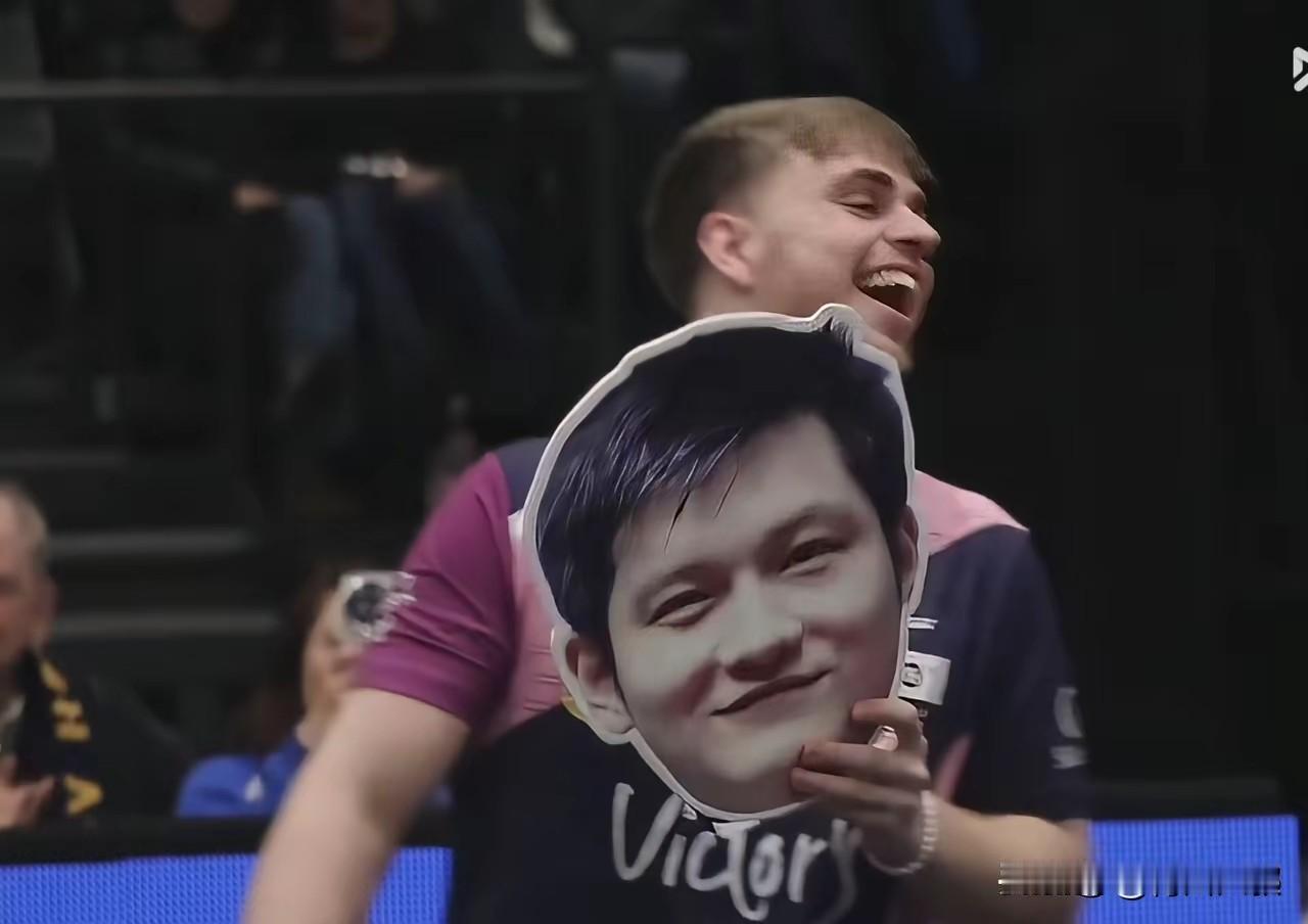 樊振东输球,大家笑哈哈! 莫雷加德拿着东哥的大头贴打球! 为啥大家这么快乐? 因为萨尔布吕肯早已经晋级了, 第一盘东哥2:3输给温瑞博得1分, 第四盘东哥2:3输给西蒙得1分, 即使小莫和达科不打, 萨尔布吕肯也攒够了10分晋级了! 所以说这场球, 大家打表演赛也正常, 主要是要攒一下体力, 打好剩下的半决赛和决赛了!