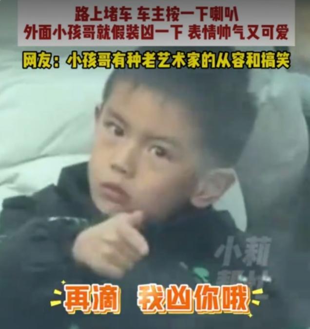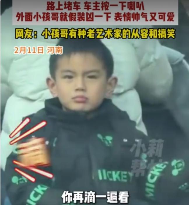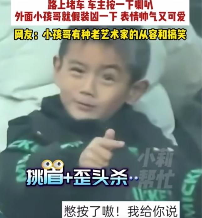 堵车偶遇“最小霸气哥”,一按喇叭就“开枪”,网友:这才是生活该有的样子 谁能想到,一次再普通不过的堵车,竟被一个小朋友治愈了无数打工人的心。 2月11日,河南街头,车流缓慢挪动,任谁遇上都会有点烦躁。可这位司机轻轻按了一下喇叭,奇迹发生了——前面电动车后座的小朋友,瞬间眉头一皱,小手一比,当场“举枪反击”。 那一脸严肃、又奶又凶的模样,瞬间戳中了司机的笑点。他干脆陪着小朋友玩了起来,喇叭一响,小孩就“开枪”;喇叭再响,气势更足。一来一回,像极了一场无声又可爱的“街头对战”。 明明是堵车的烦躁时刻,却因为这幼稚又真诚的互动,变得格外温柔。 很多人看完笑着笑着就破防了。 我们每天忙着赶路、忙着工作、忙着应付各种人情世故,早就忘了快乐可以这么简单。一声喇叭、一个手势、一个毫无心机的小表情,就能把成年人的疲惫瞬间冲散。 小孩不懂什么是堵车烦恼,他只知道:你逗我,我就认真陪你玩。 大人也没什么坏心思,只是在疲惫生活里,抓住了一点随手可得的甜。 有人说:这才是人间烟火最动人的样子。 没有勾心斗角,没有利益算计,只有两个陌生人,用最幼稚的方式,互相治愈。 生活本就一地鸡毛,可总有些不期而遇的温暖,让我们觉得人间值得。 这个又凶又可爱的小朋友,不仅“打”中了司机的心,也“击中”了每一个渴望简单快乐的我们。 你小时候有没有过这样又菜又爱玩的瞬间?欢迎在评论区分享你童年里那些可爱又好笑的回忆!#电动车后座的小孩##双凶又可爱的小孩##开车偶遇凶小孩