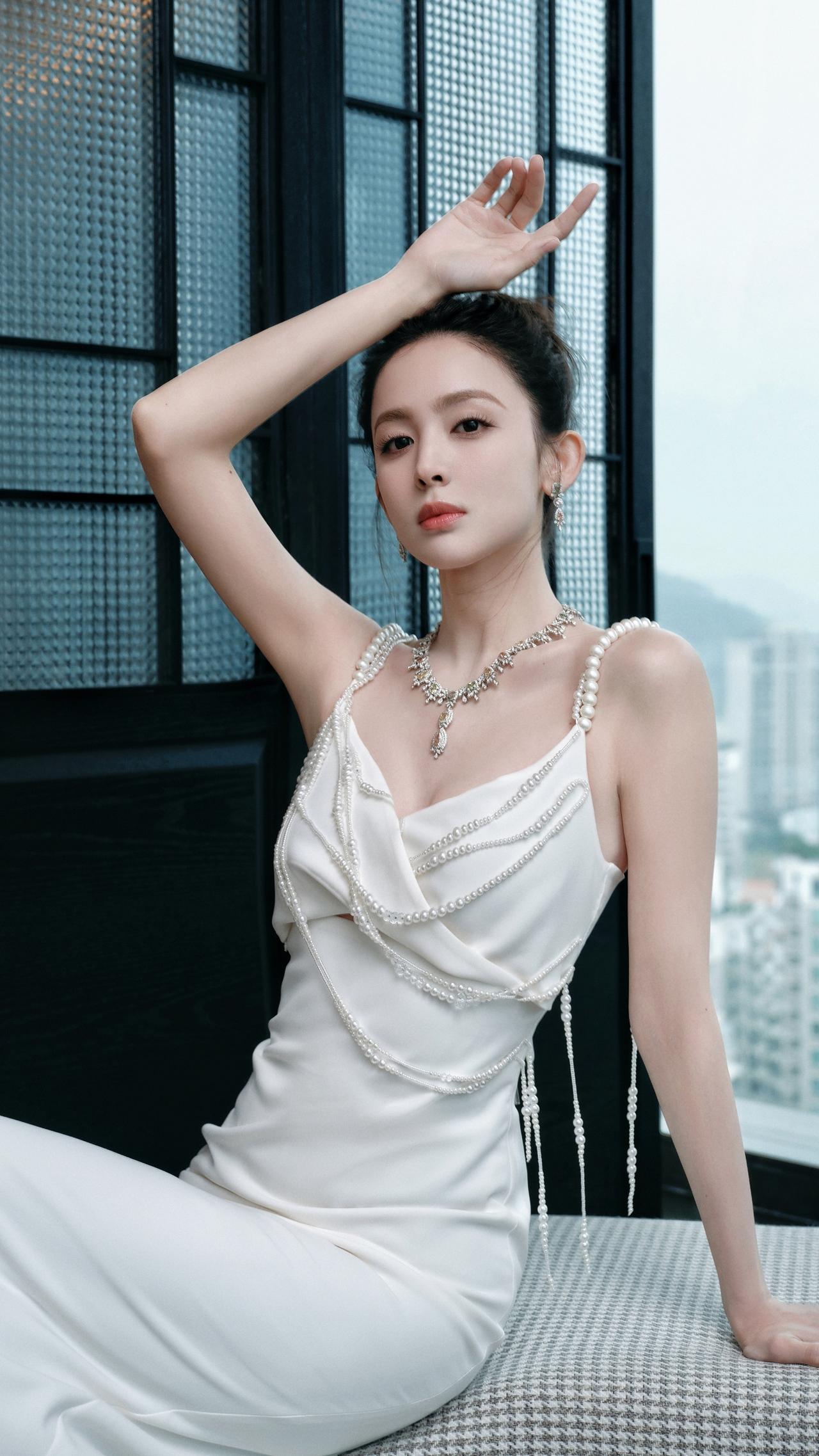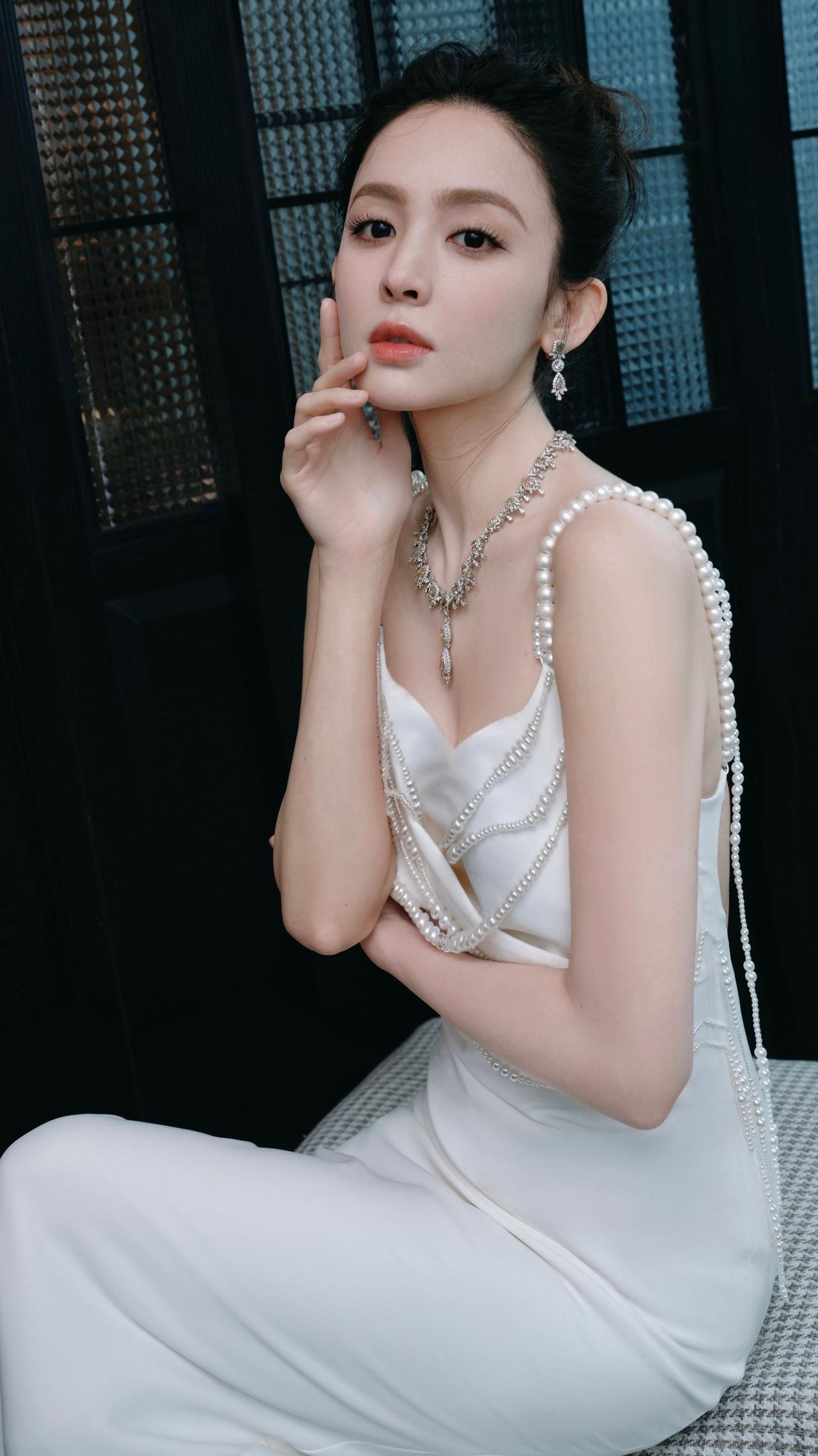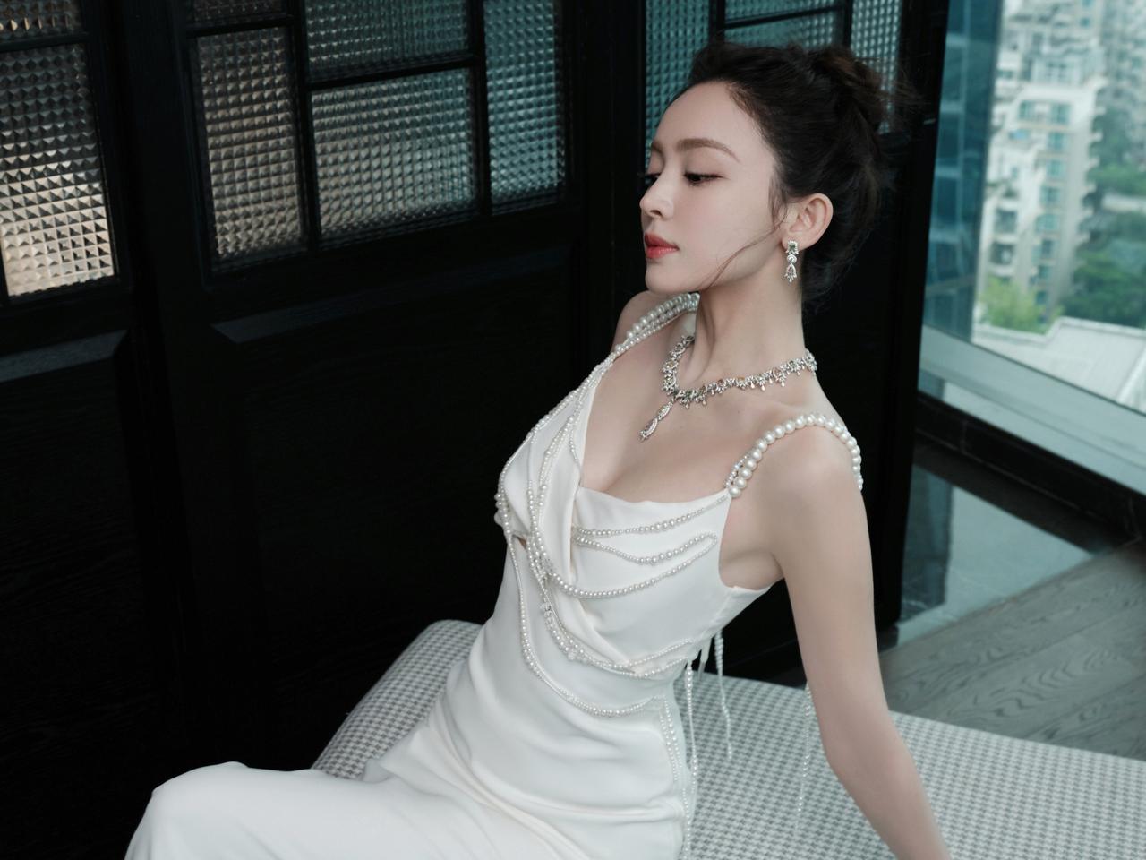 吴千语这组大片,美到失语了!✨ 一袭白色缎面吊带裙,勾勒出玲珑有致的曲线,丸子